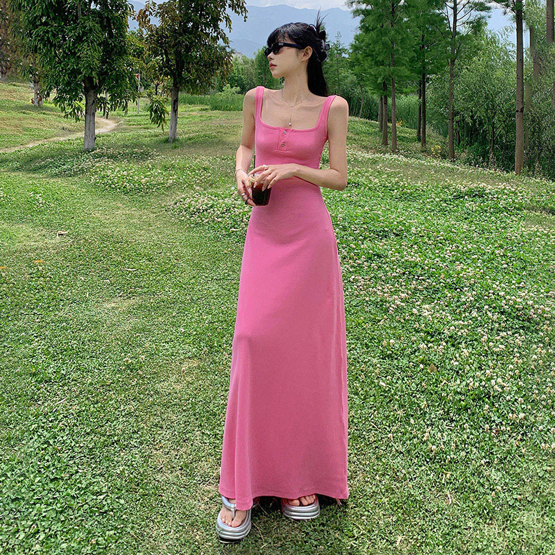 美式纯欲a字裙夏新款修身显瘦弹力吊带连衣裙长裙