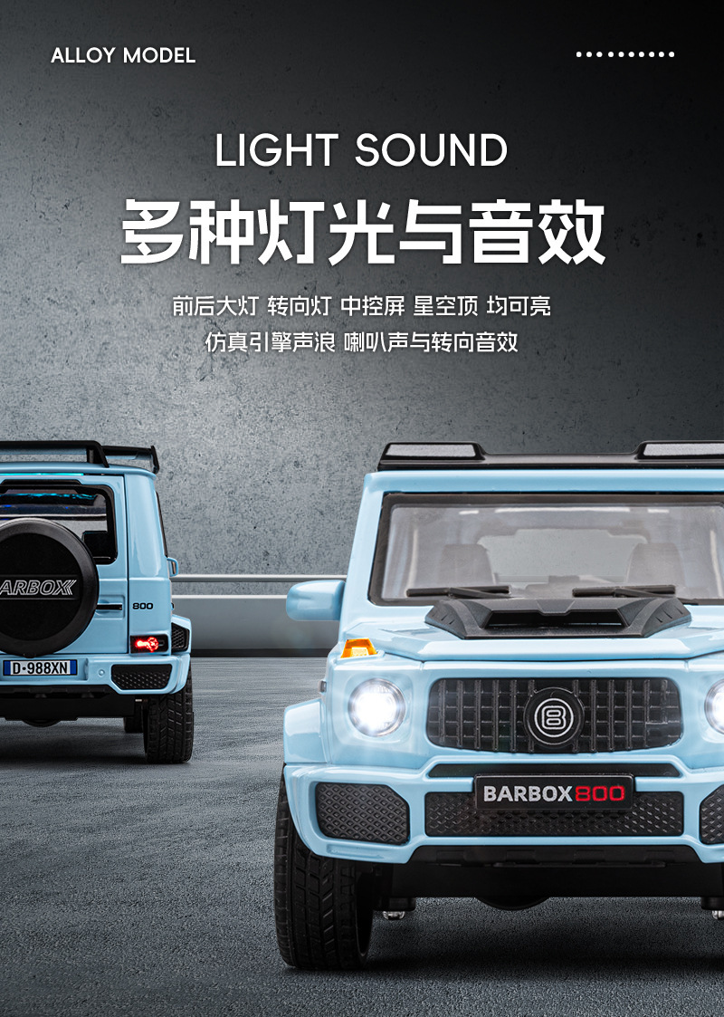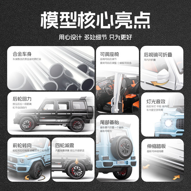 嘉业合金车模1:22巴博斯G800越野车带声光回力玩具车音乐模型摆件