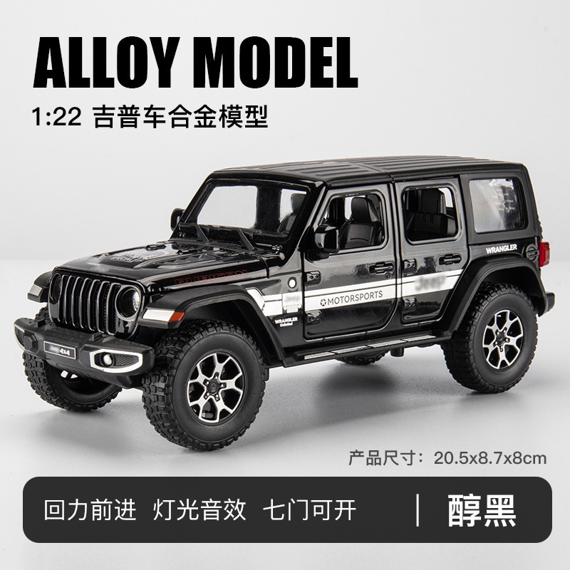 嘉业合金车模1:22牧马人吉普越野车带声光回力玩具车音乐模型摆件