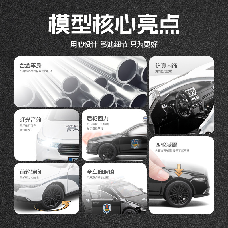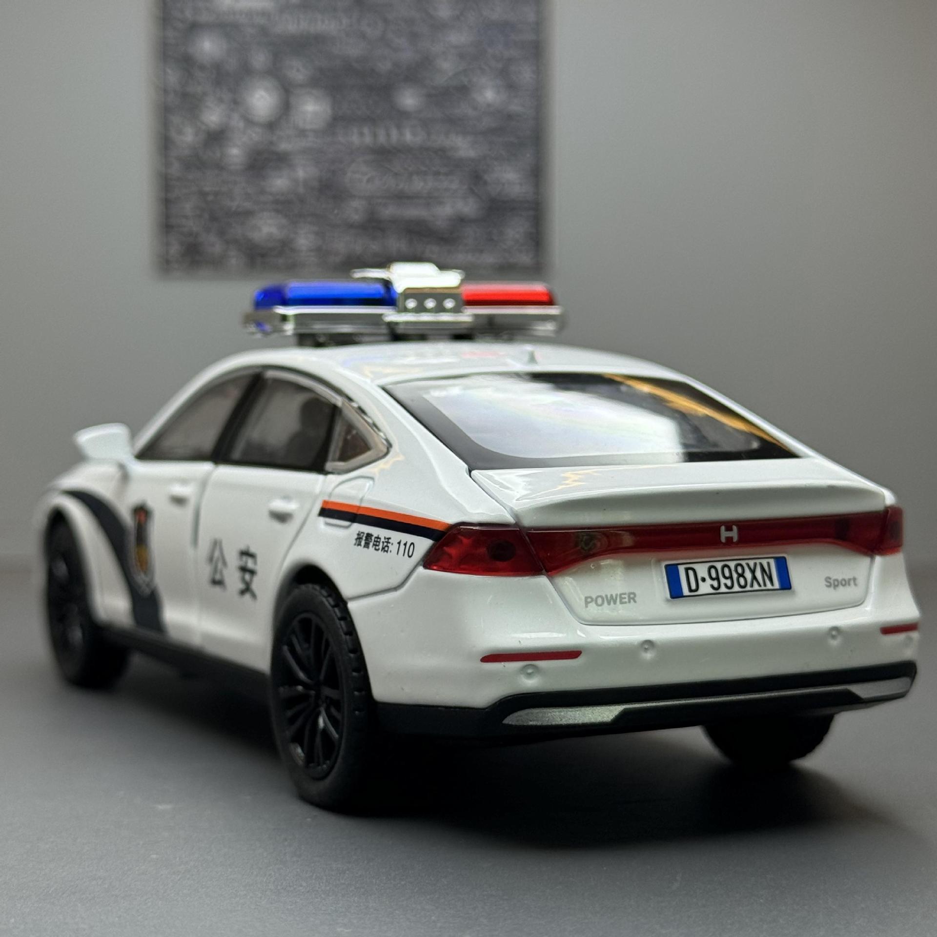 嘉业合金车模1:32雅阁警车带声光回力玩具车音效模型摆件