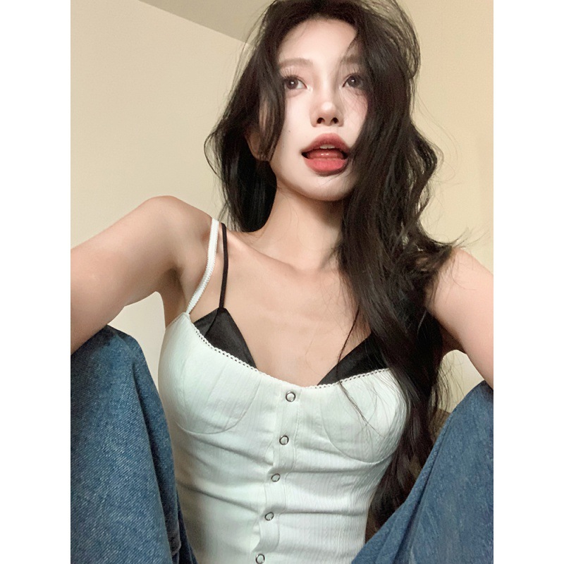 夏季新款纯欲性感辣妹白色抹胸吊带蕾丝花边显瘦上衣女