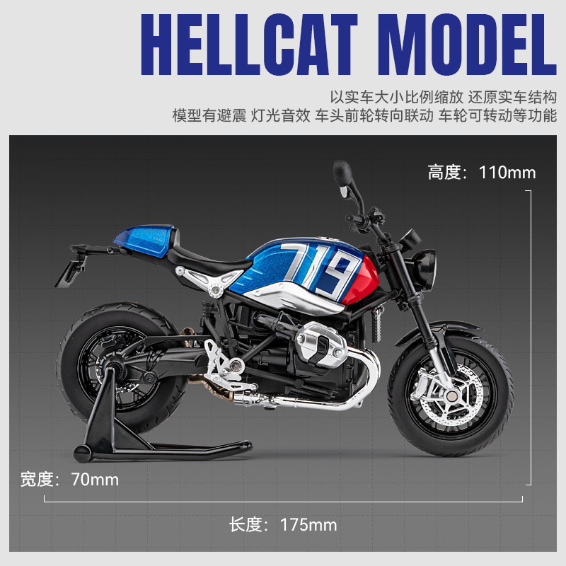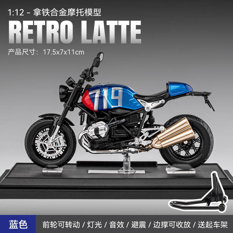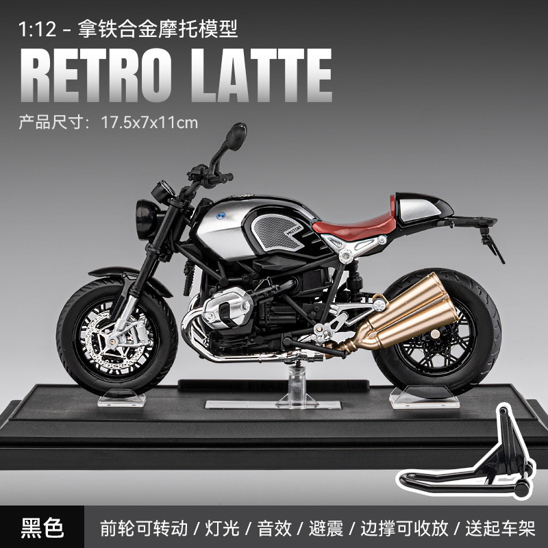 嘉业合金车模1:12保马拿铁摩托车声光滑行玩具车音效模型摆件