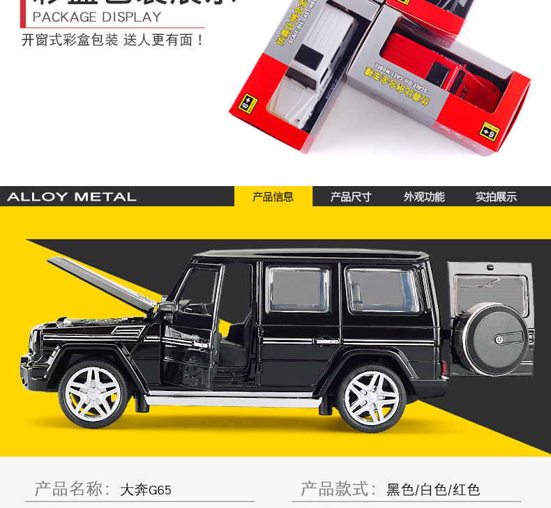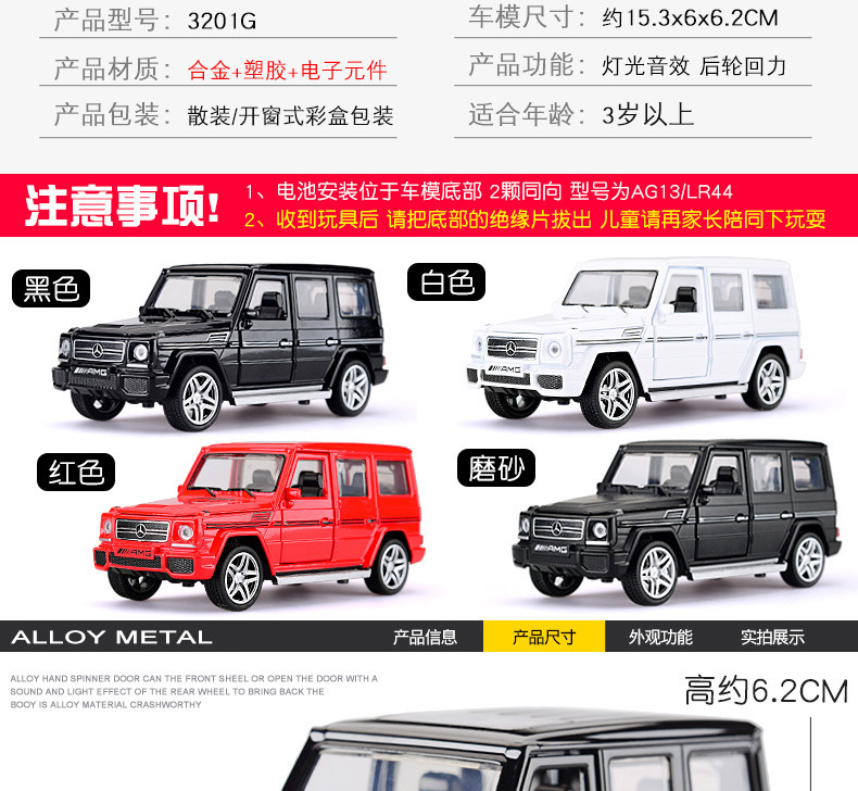 建元1:32奔驰大G合金G63越野车模型回力声光男孩玩具车模摆件收藏