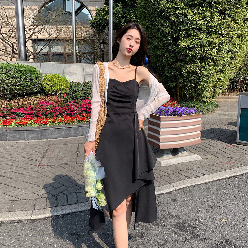 黑色晚礼服女夏装新款小个子修身轻奢气质性感吊带长裙鱼尾裙