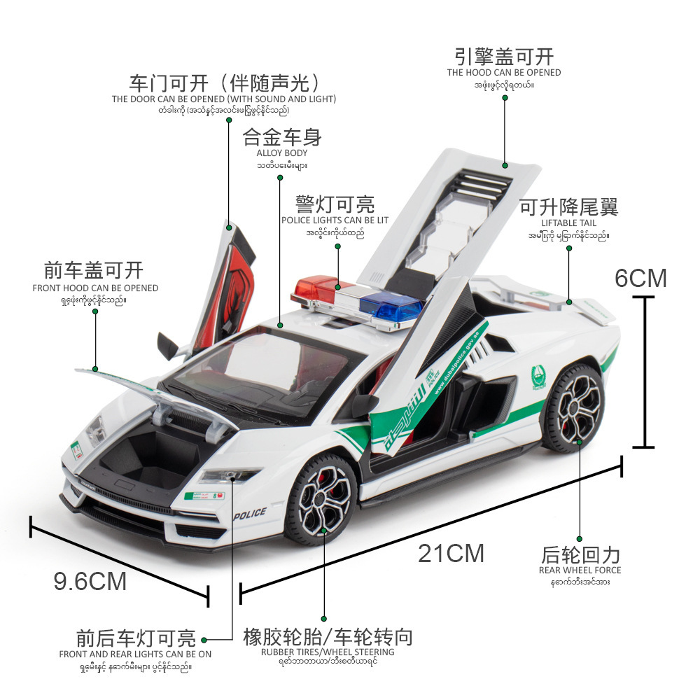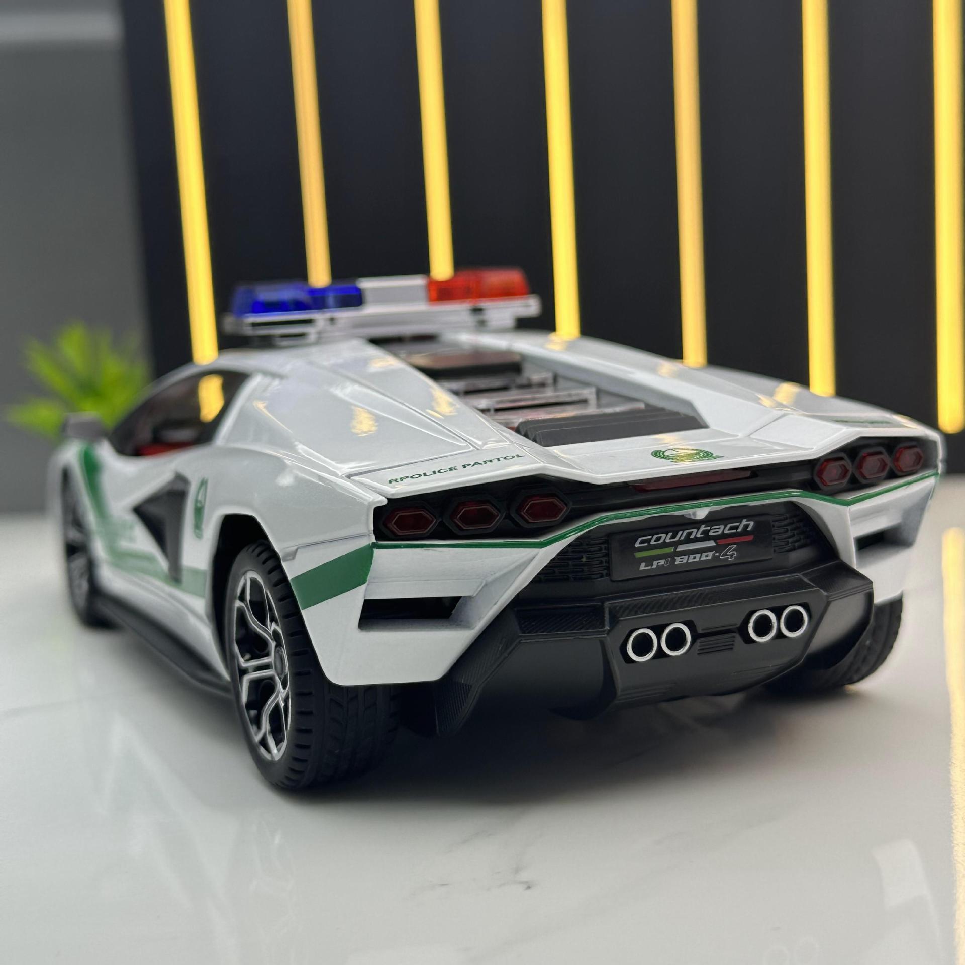 威丽合金车模1:24兰博中东版警车声光回力玩具车音乐模型摆件收藏