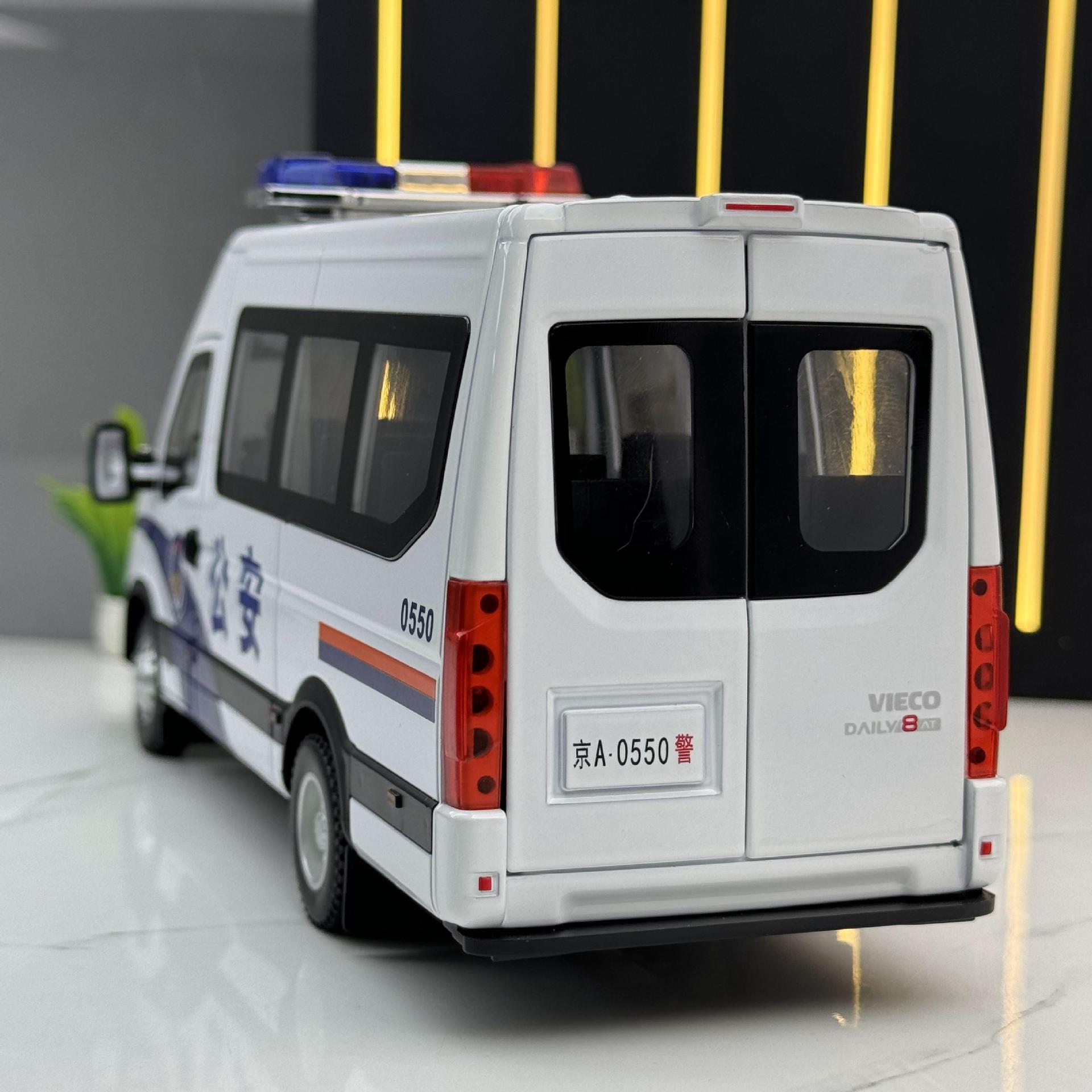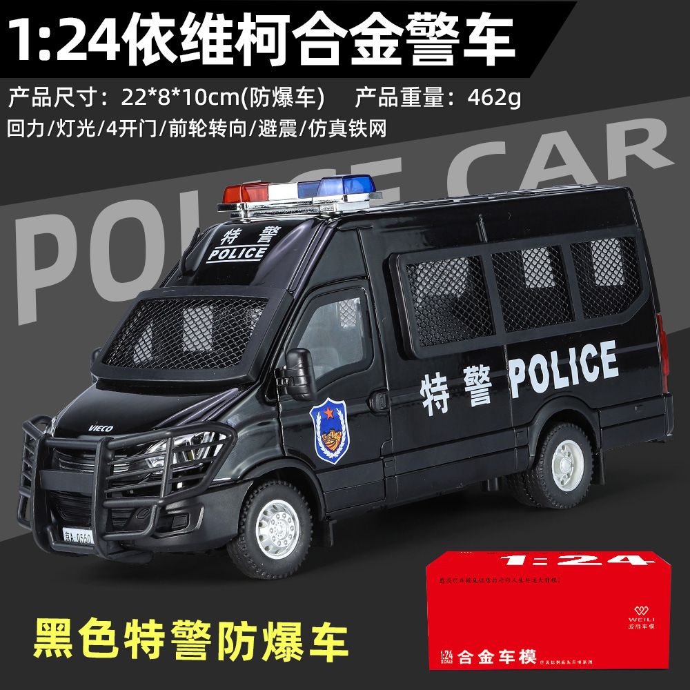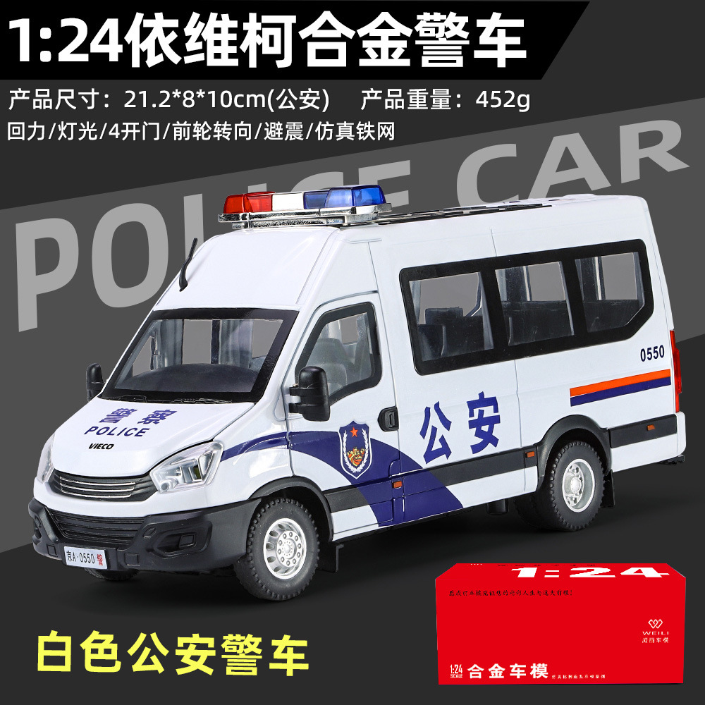 威丽合金车模1:24依维柯警车带声光回力玩具汽车音乐模型摆件藏品