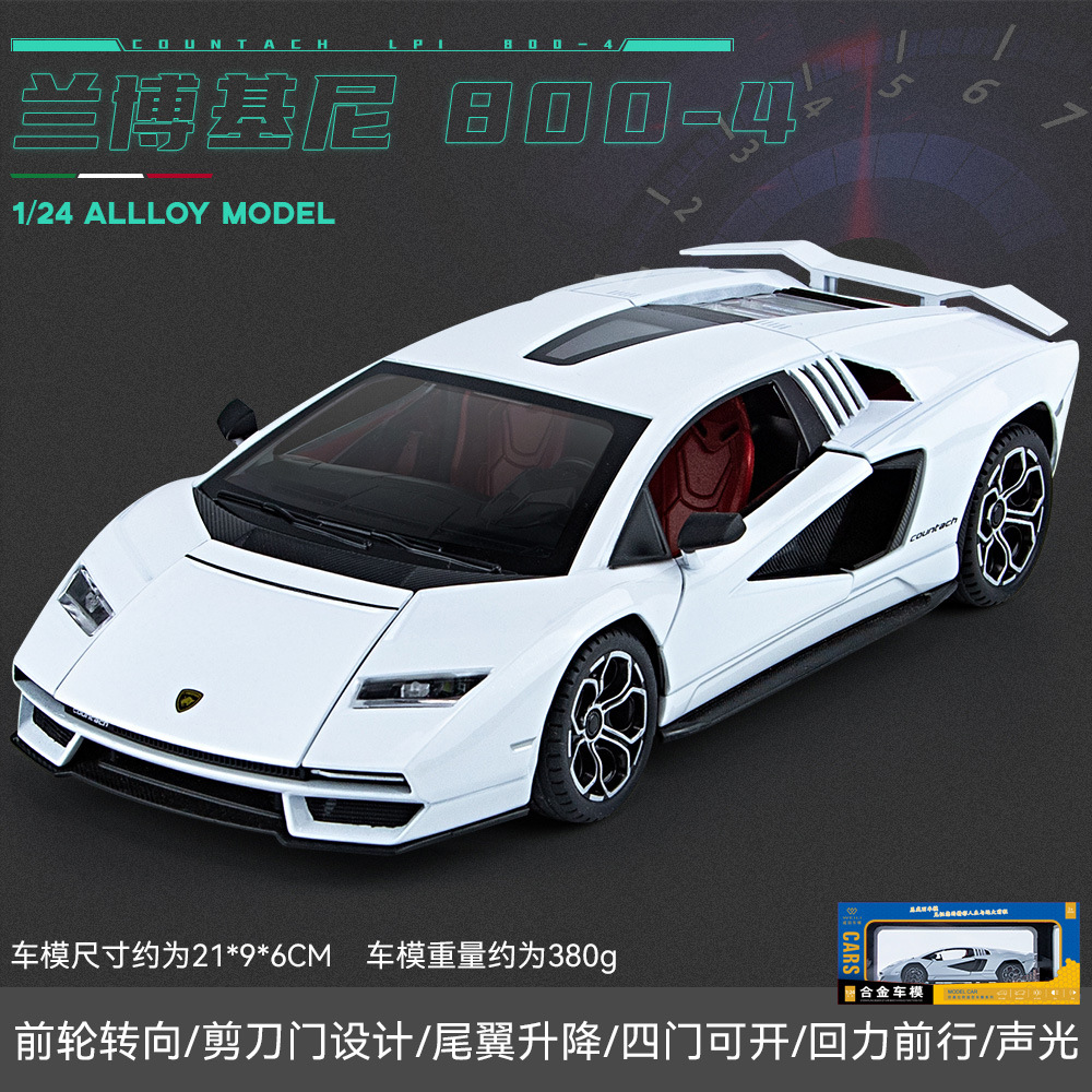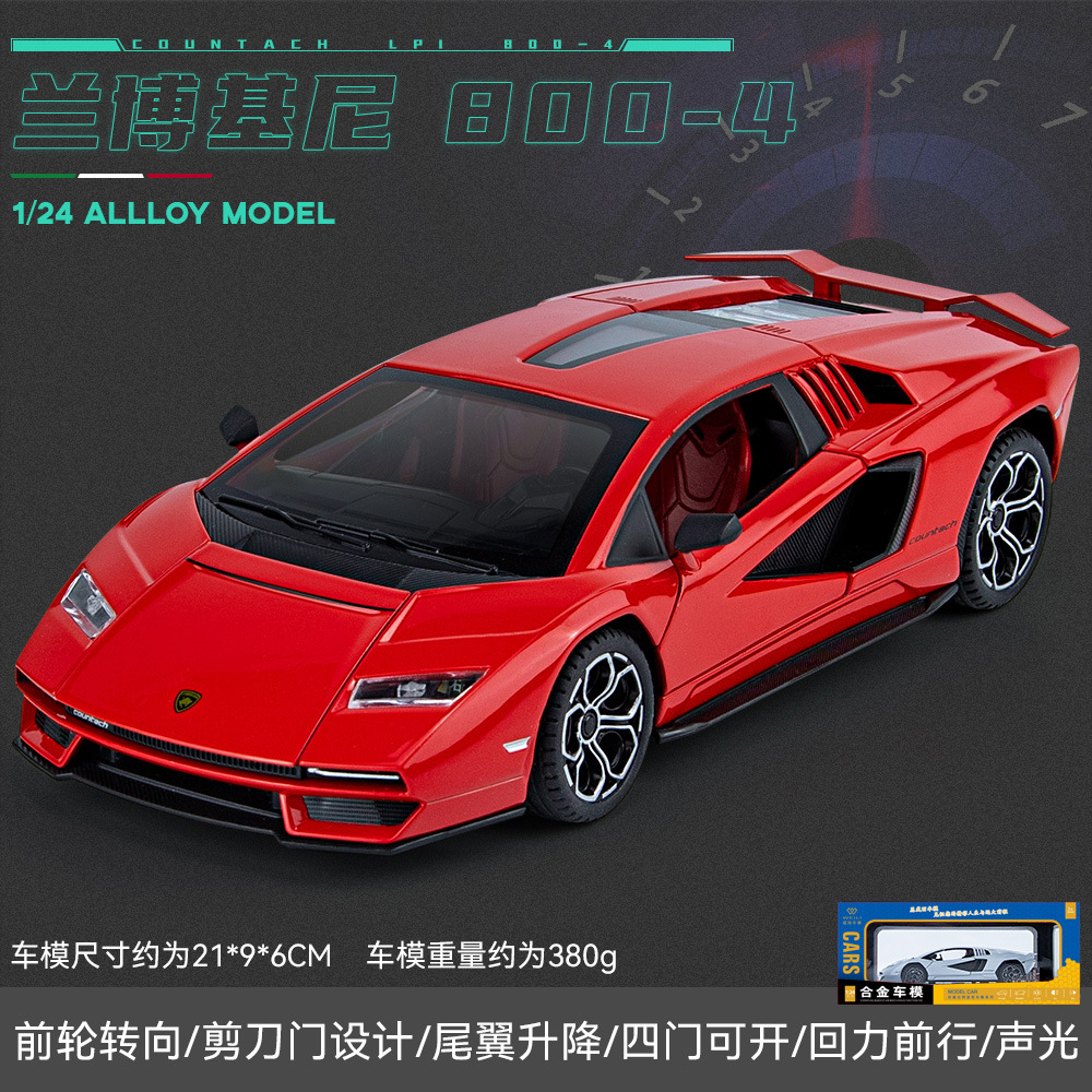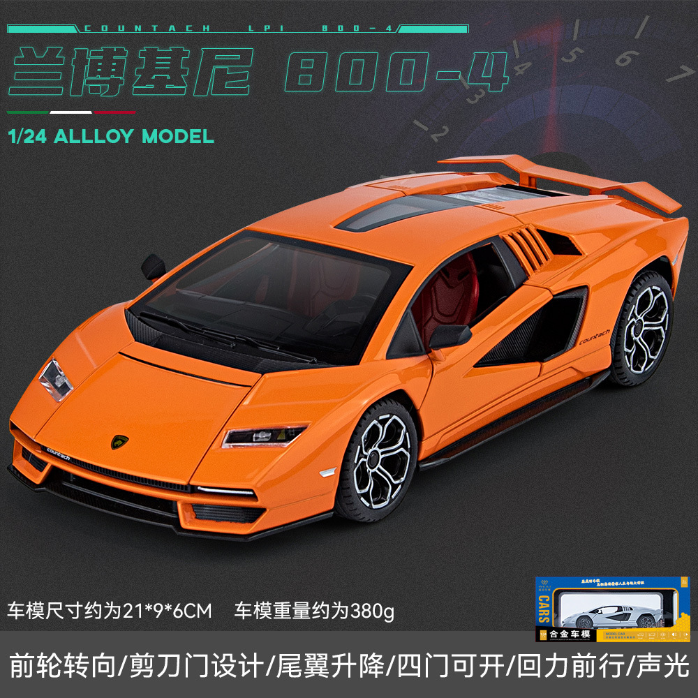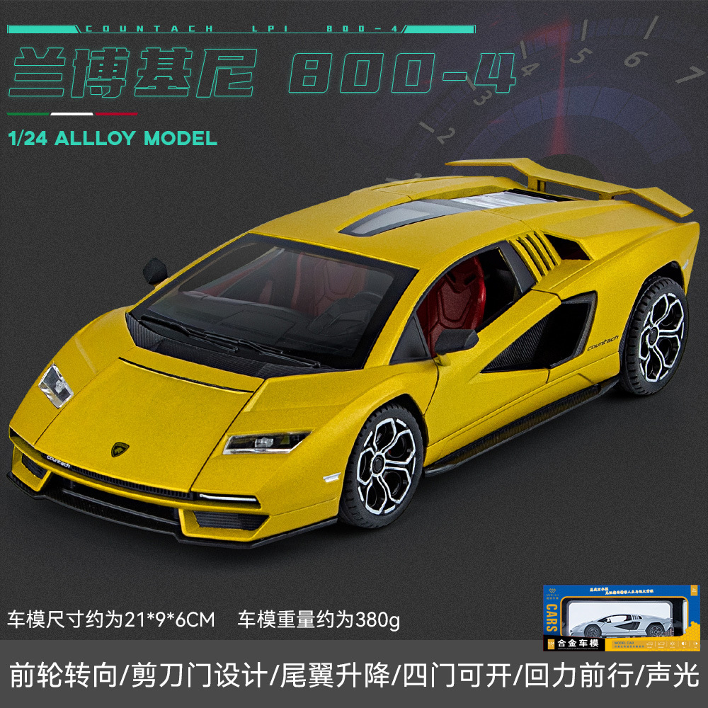 威丽合金车模1比24兰博LP800跑车声光回力玩具车音乐模型摆件收藏