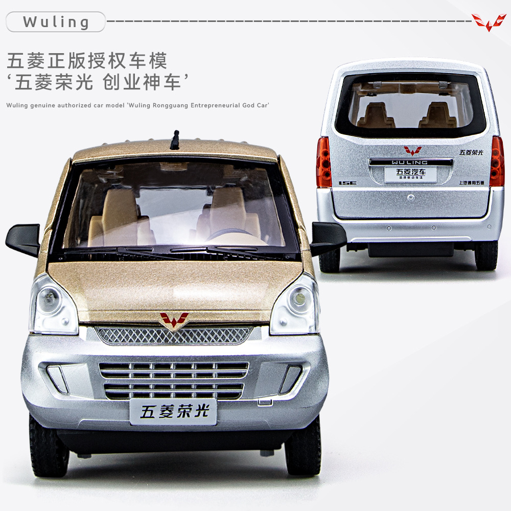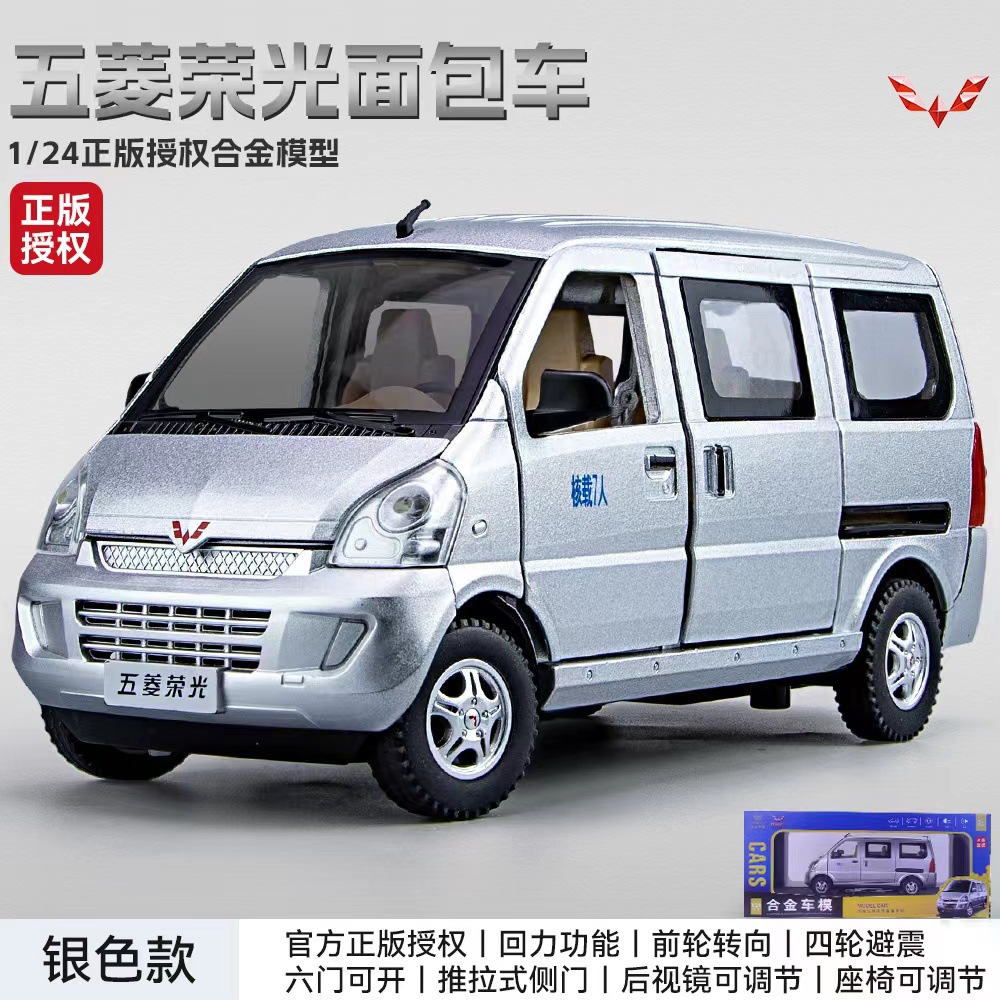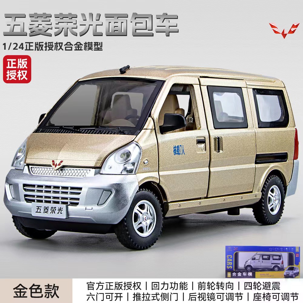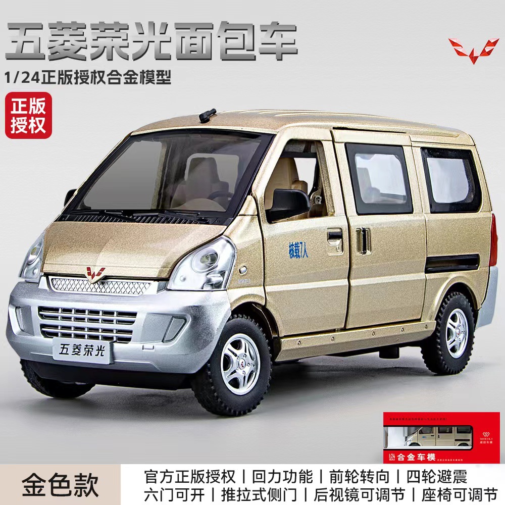 威丽合金车模1:24正版五菱荣光面包车带声光玩具汽车音乐模型摆件