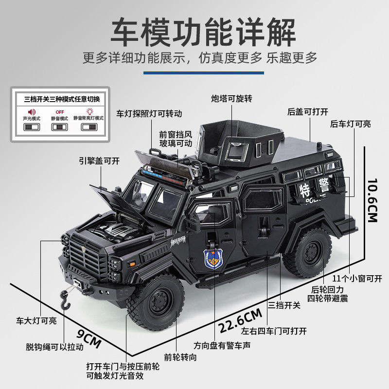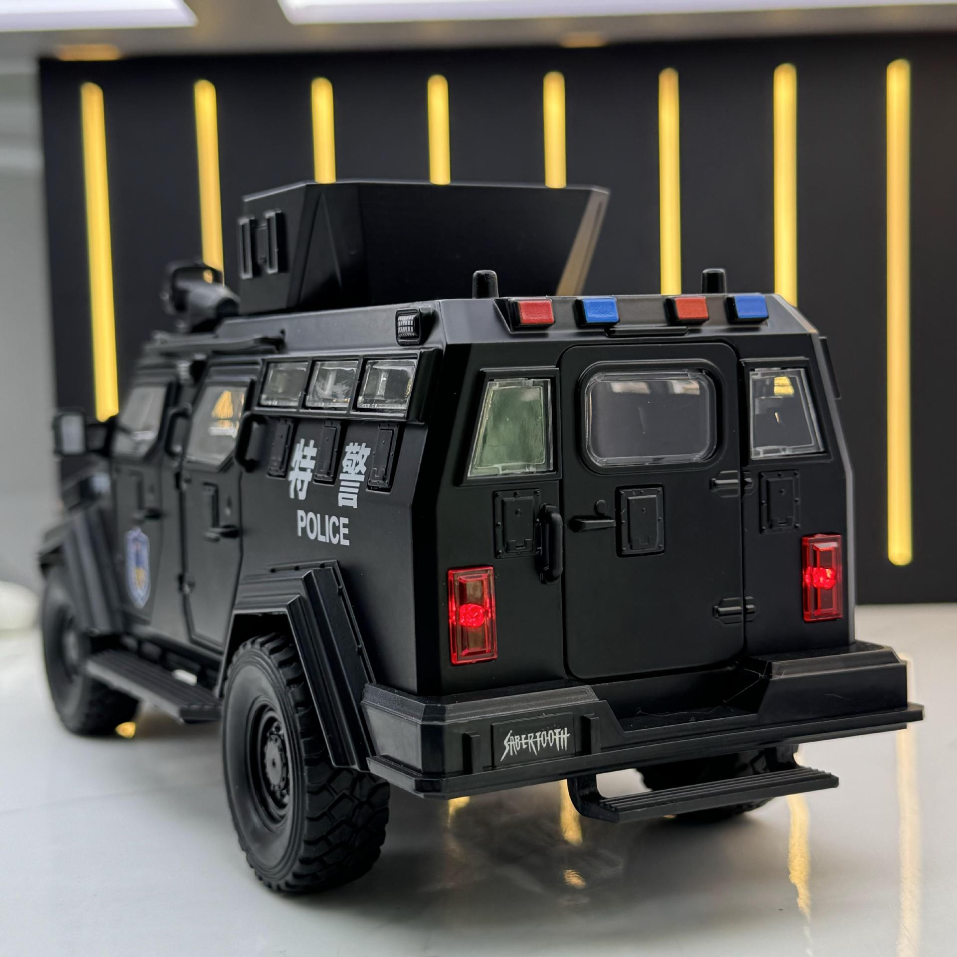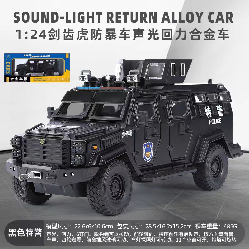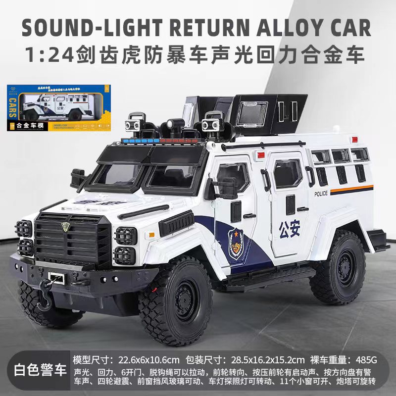 威丽合金车模1:24剑齿虎警车声光回力玩具车音乐模型摆件