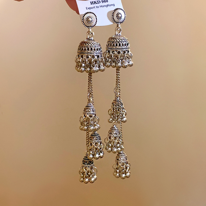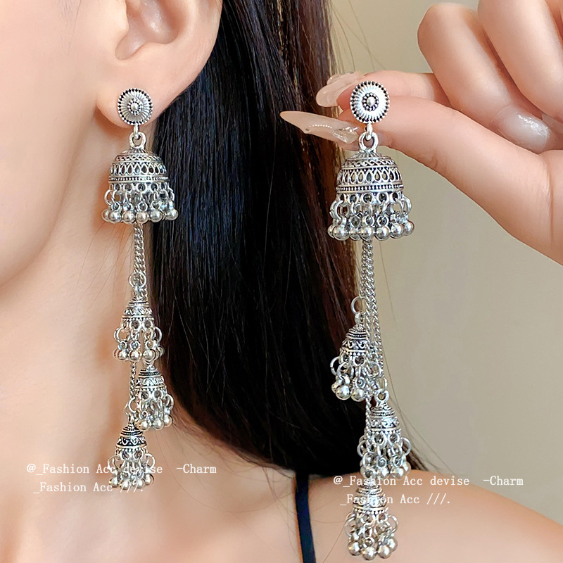 钢针跨境圆形流苏耳环复古宫廷风长款耳坠气质高级感时尚耳饰
