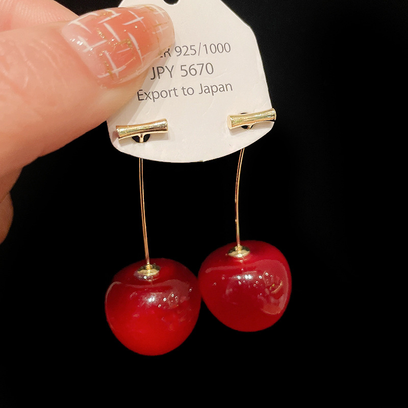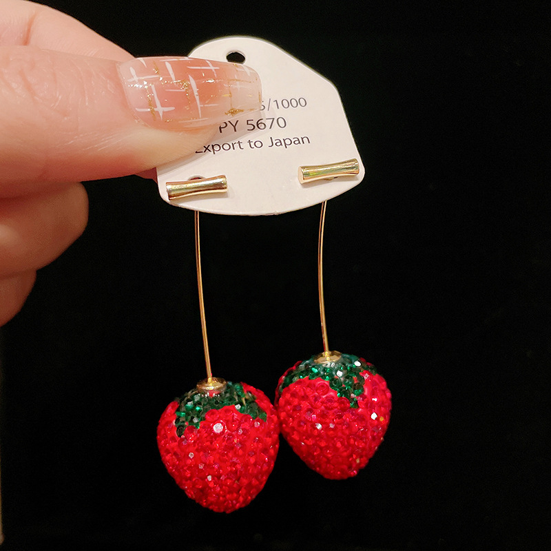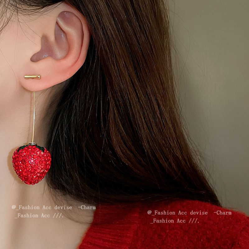 镶钻草莓樱桃耳环新款甜美百搭耳钉小众设计感轻奢耳饰
