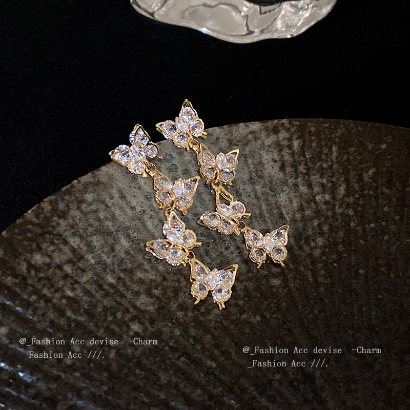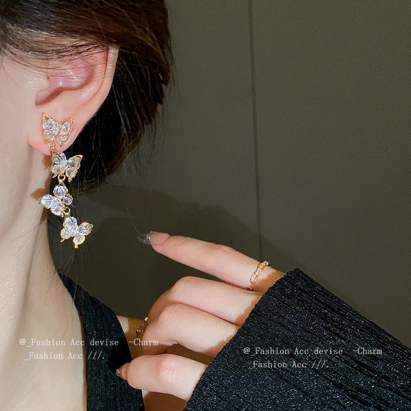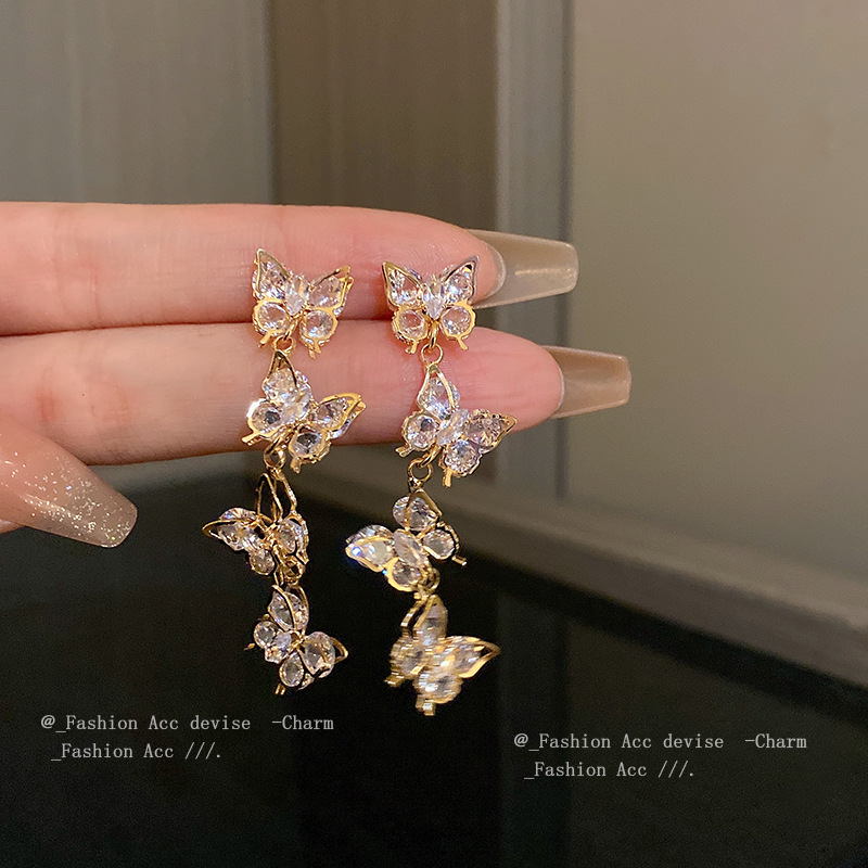 银针锆石蝴蝶流苏耳环 小众创意设计感耳坠时尚轻奢ins风耳饰