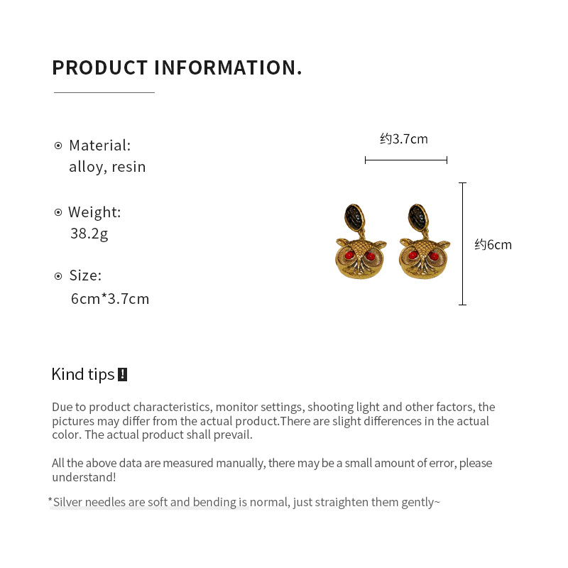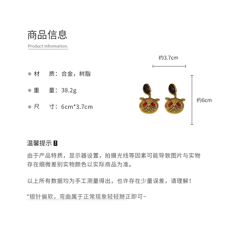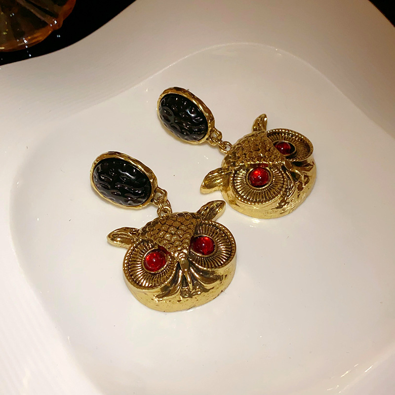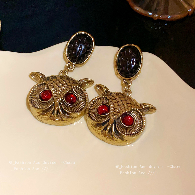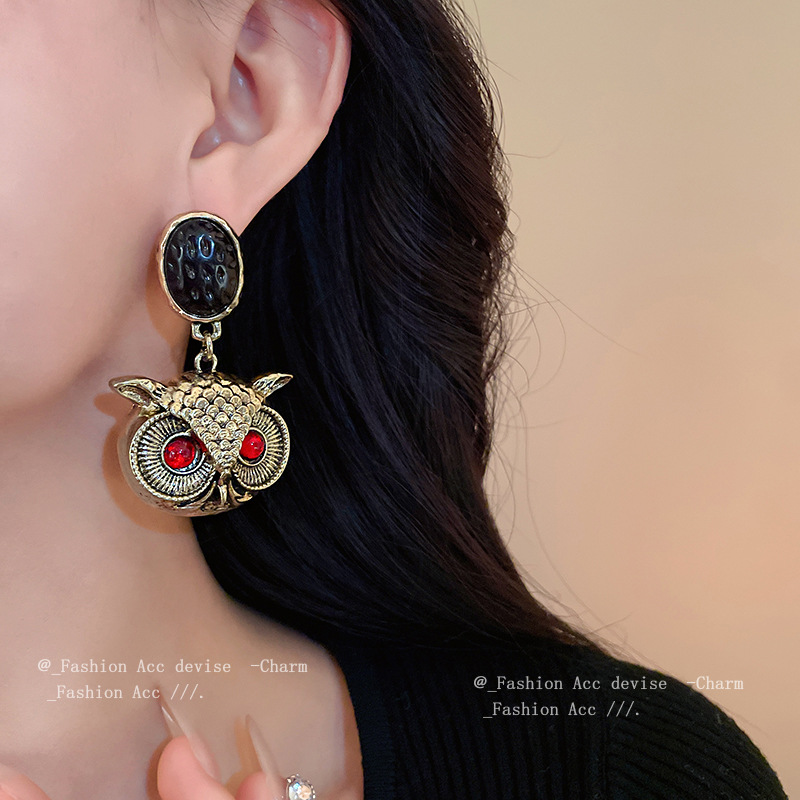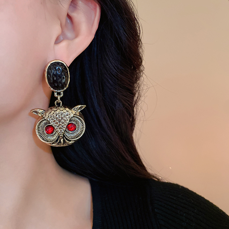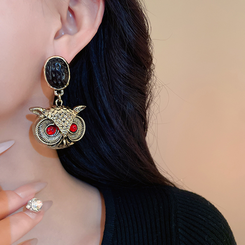 vintage中古银针猫头鹰夸张耳环复古ins跨境耳坠独特设计耳饰