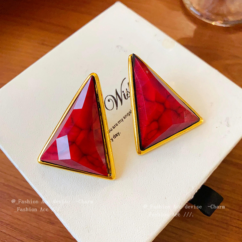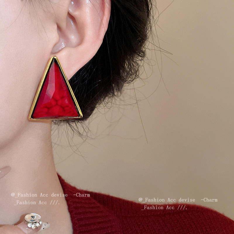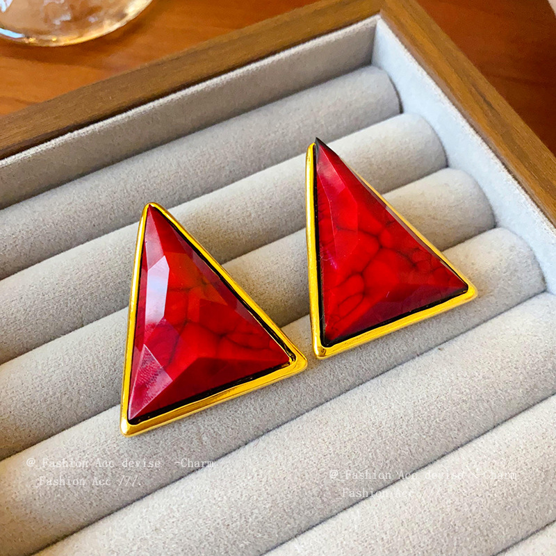 vintage中古银针三角形耳钉复古高级感个性耳环欧美夸张潮耳饰女