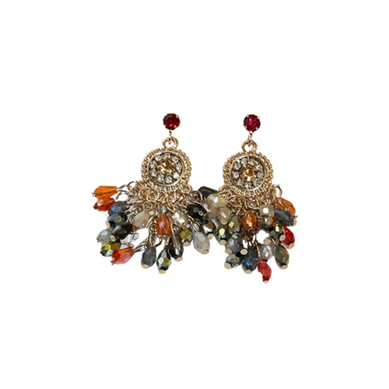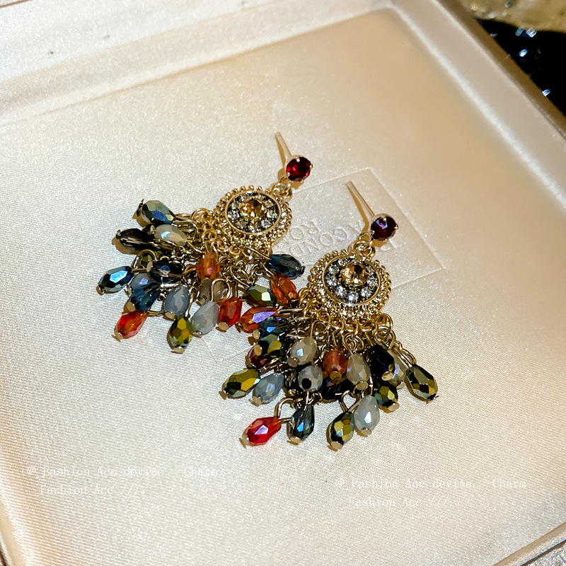 银针镶钻花朵水晶流苏耳环时尚小众新款耳坠轻奢高级感耳饰