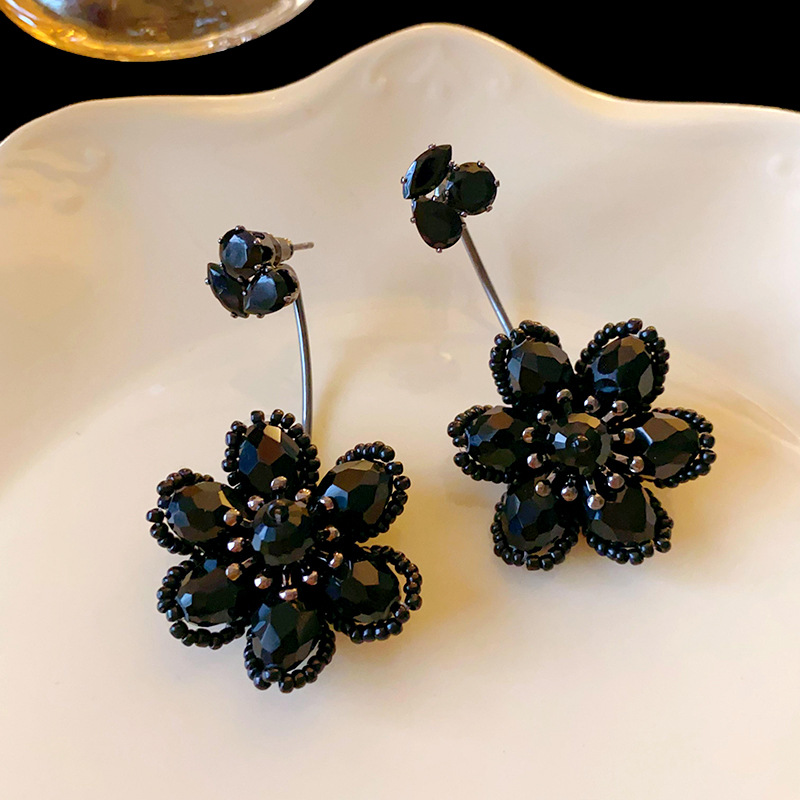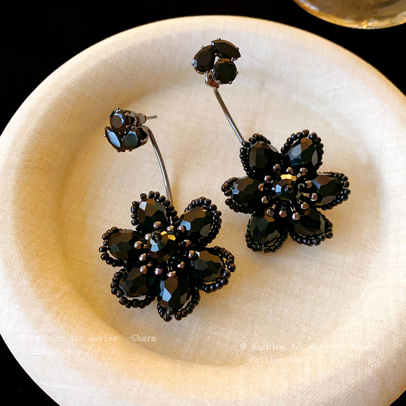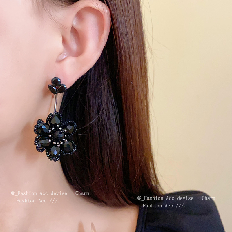 银针花朵玻璃珠米珠耳环个性暗黑风气质耳坠辣妹百搭高级感耳饰女