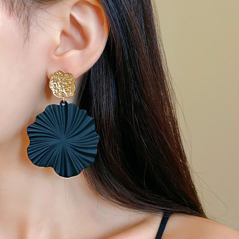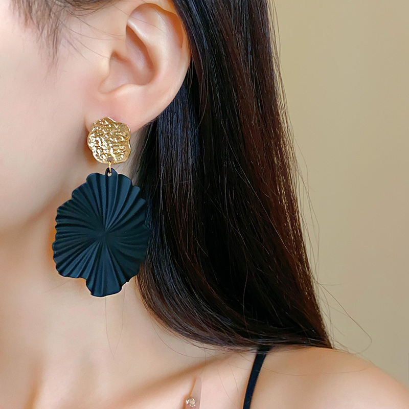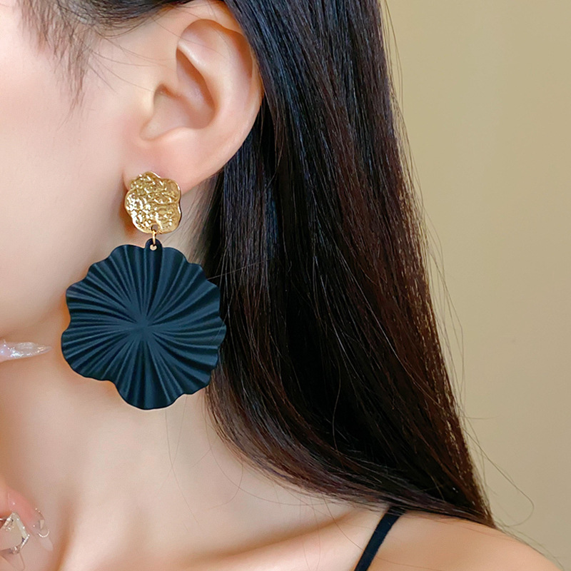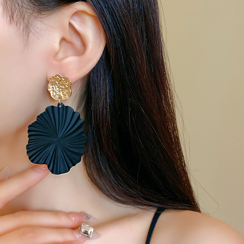 银针黑色薄荷叶耳环新款欧美跨境耳钉气质高级感耳饰女