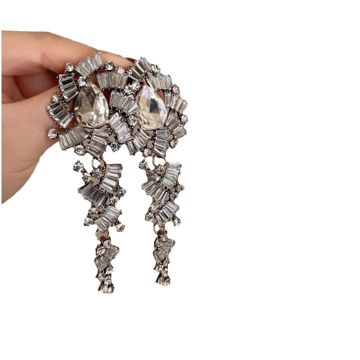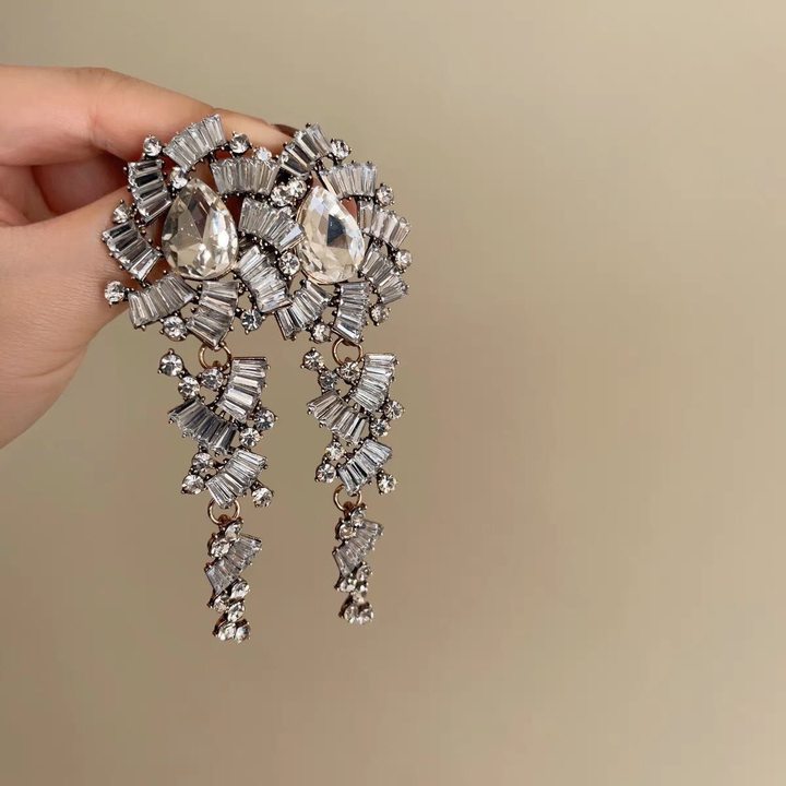 银针镶钻水滴花朵流苏耳环高级感晚宴舞会轻奢耳坠礼服时尚潮耳饰