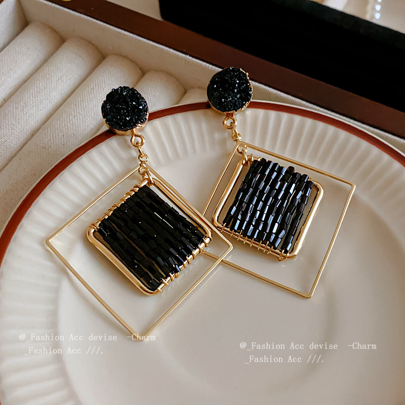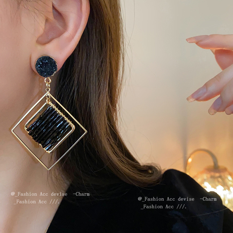 银针菱形镂空长款耳环港风小众高级感耳坠复古时尚设计感耳饰