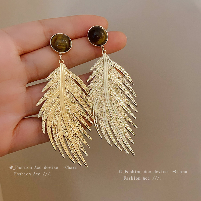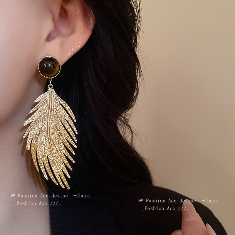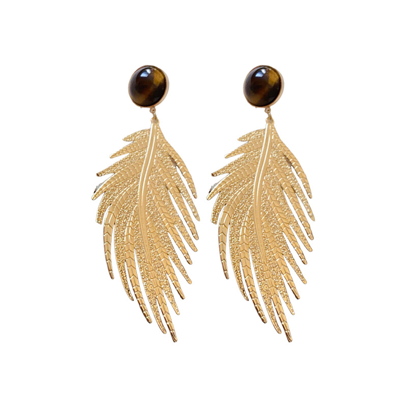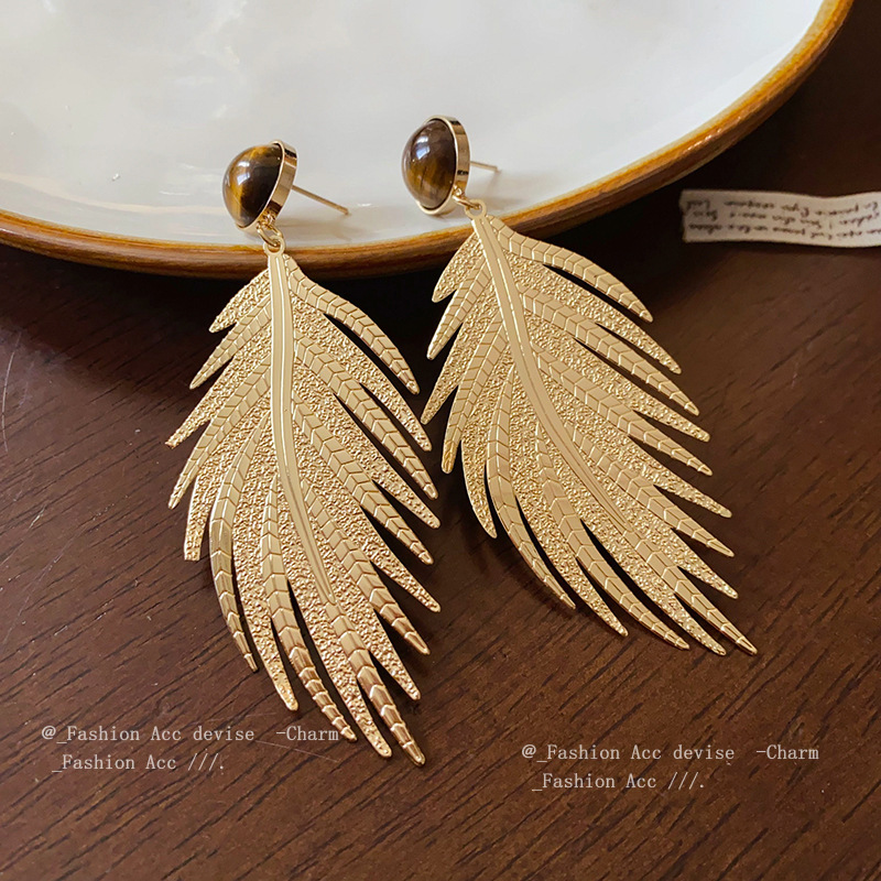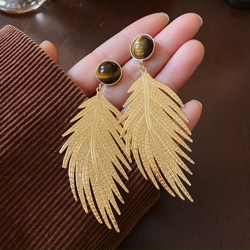 银针人造虎眼石树叶耳环高级感秋冬时尚耳坠复古小众设计耳饰