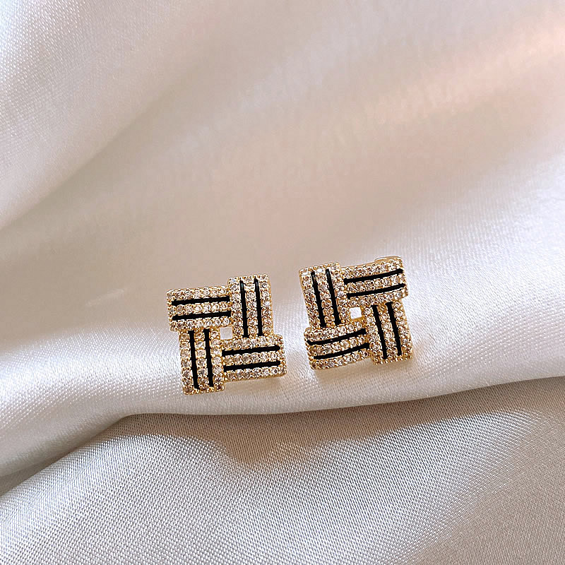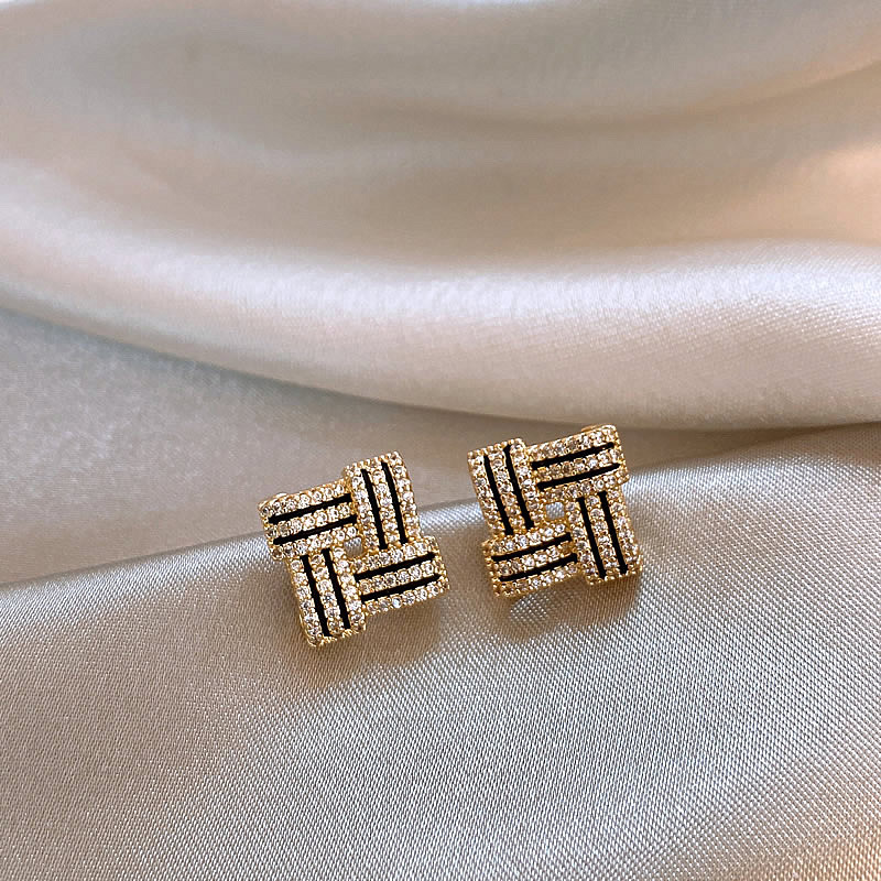 真金电镀银针锆石菱形交叉耳钉韩系轻奢设计耳环网红百搭通勤耳饰