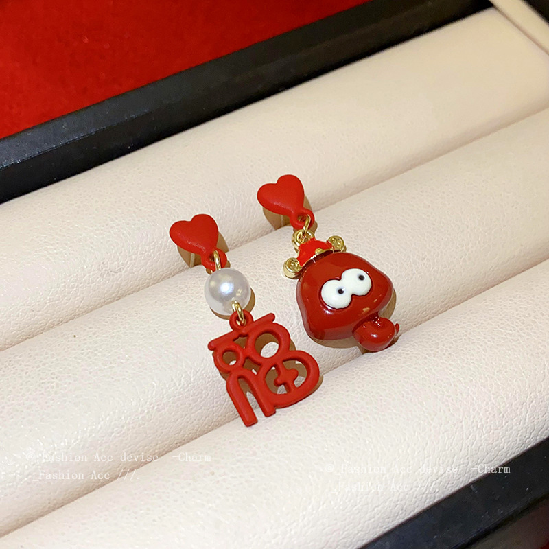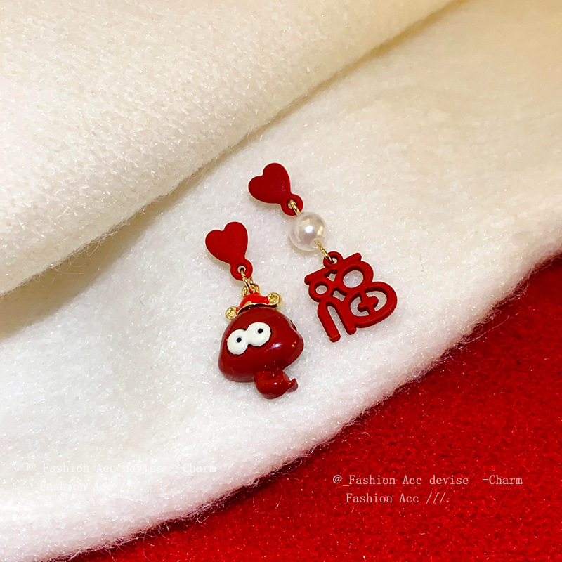 银针滴油小蛇福字珍珠耳钉女新年氛围百搭耳环新中式小众简约耳饰
