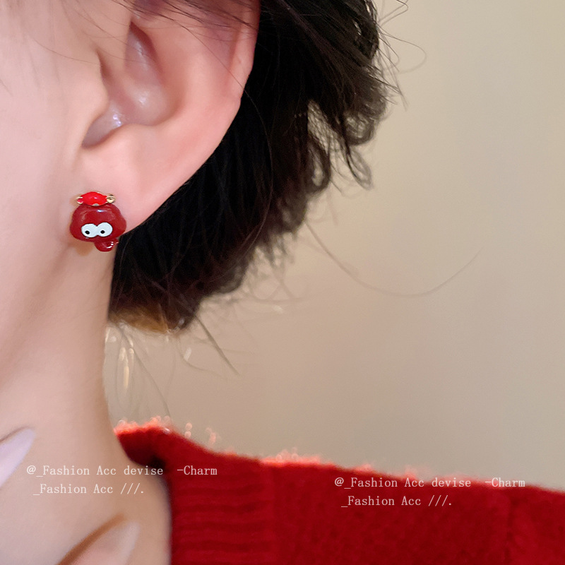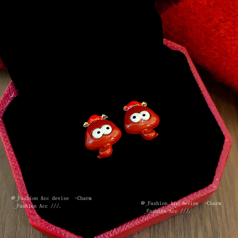 银针滴油铜钱财神小蛇耳钉女复古小众设计百搭耳环高级感气质耳饰