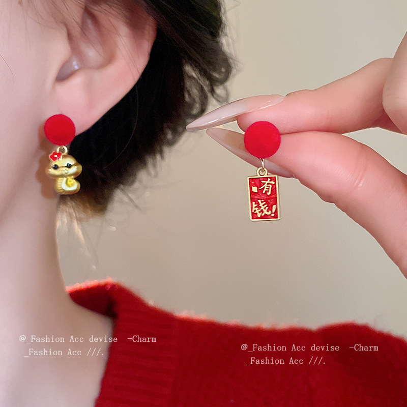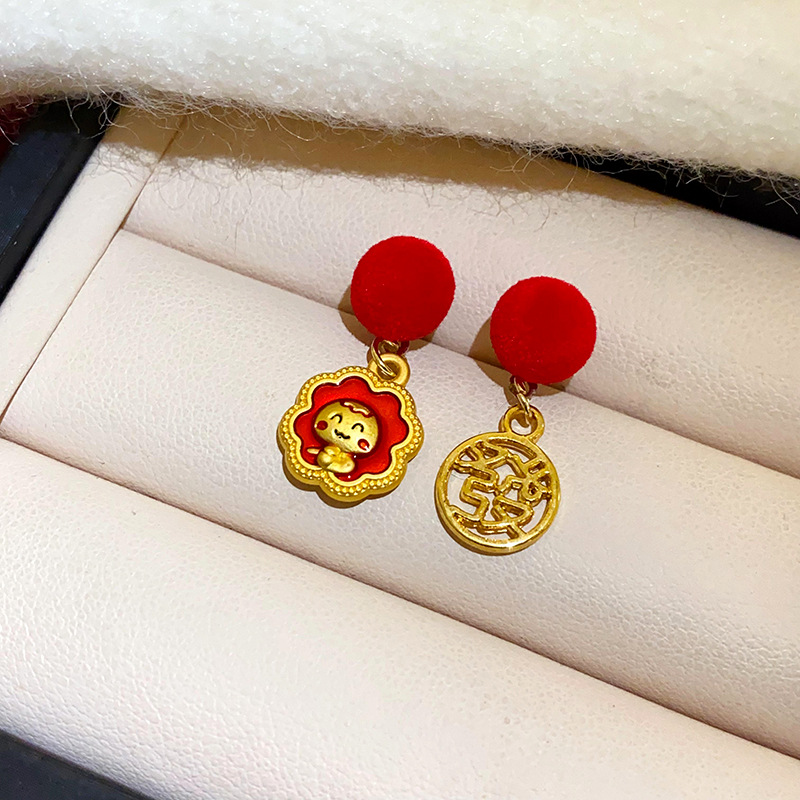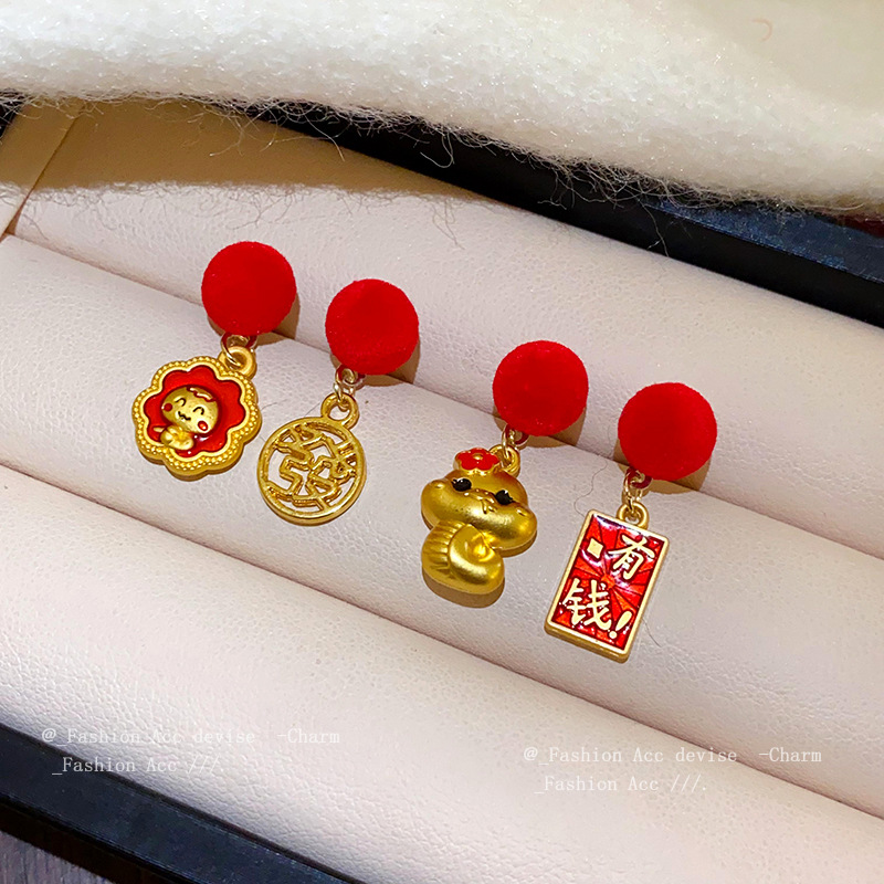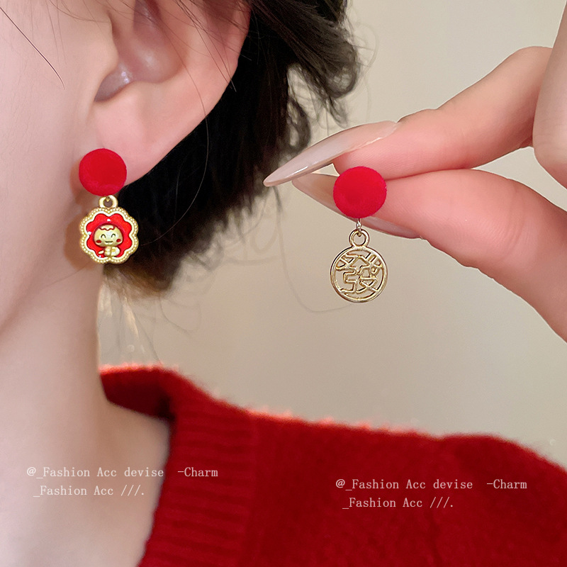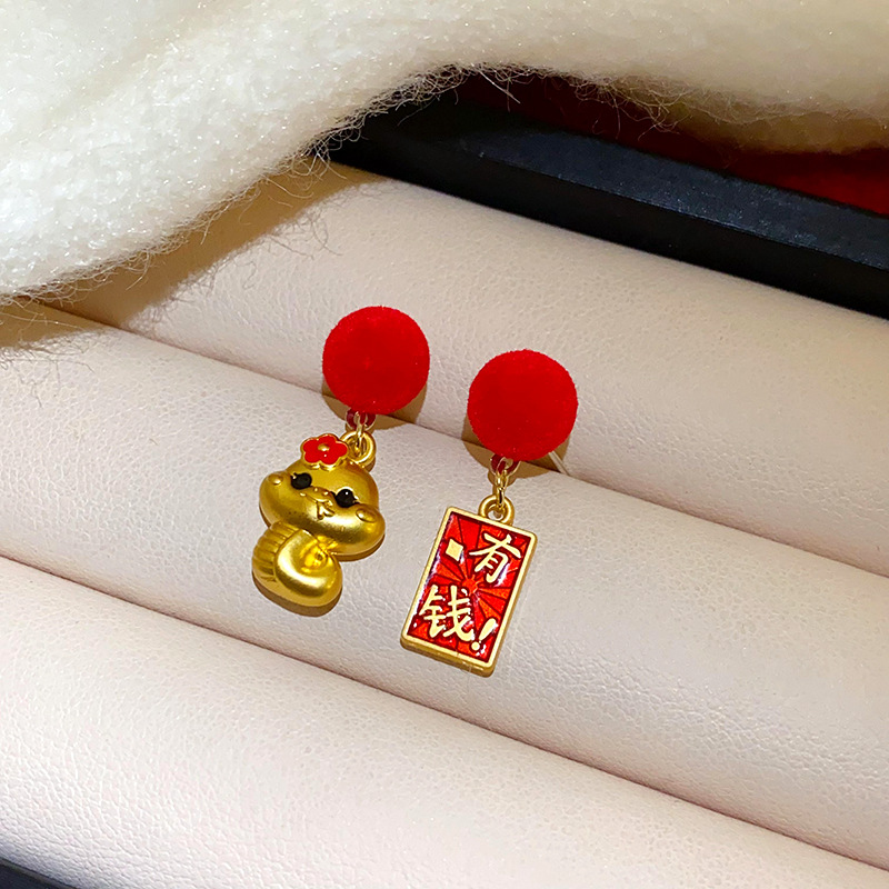 银针滴油植绒圆球花朵小蛇耳钉小众百搭耳环简约时尚新年耳饰