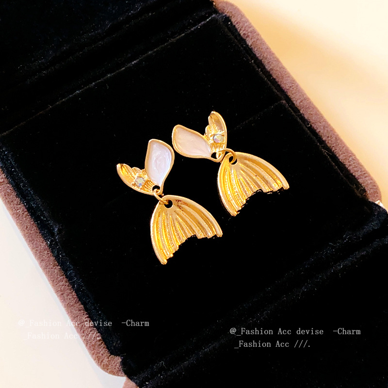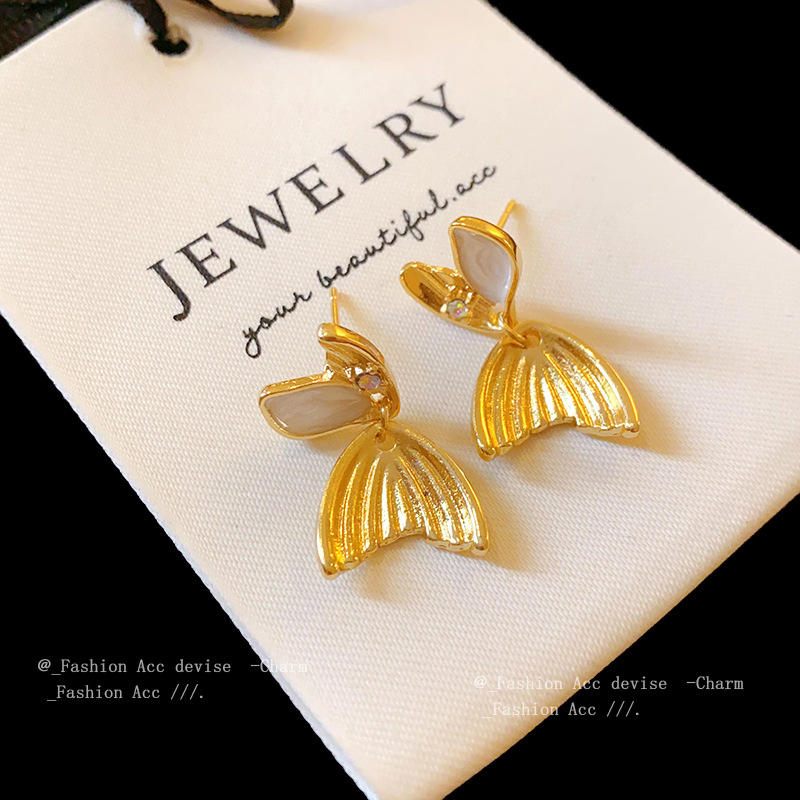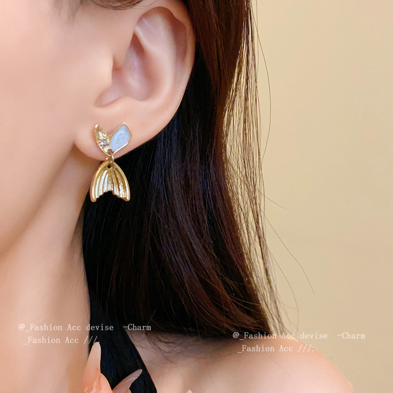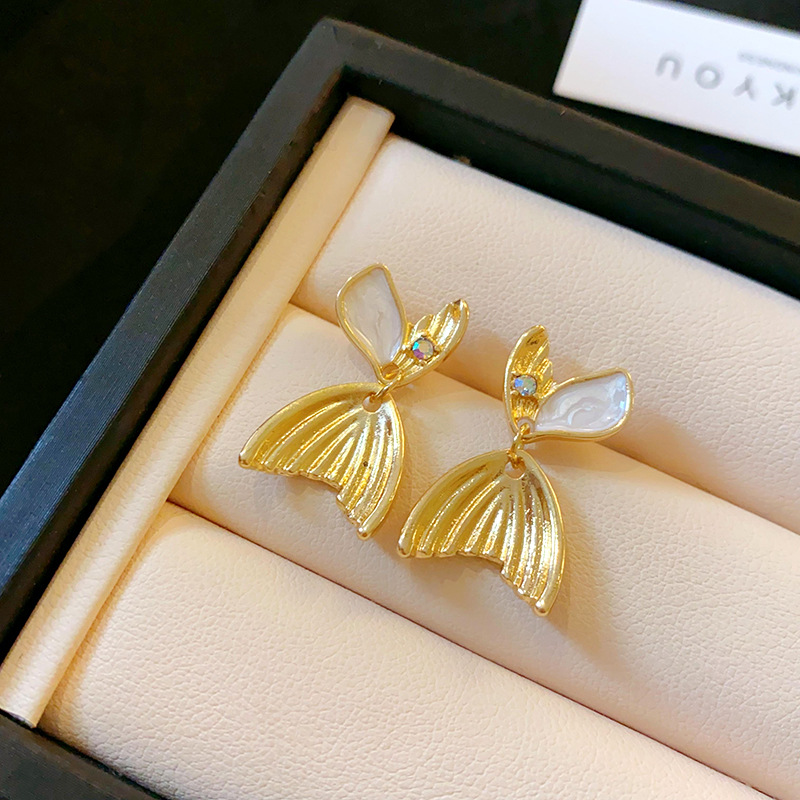 银针滴油镶钻鱼尾纹路耳环轻奢高级感度假风耳坠复古精致新款耳饰