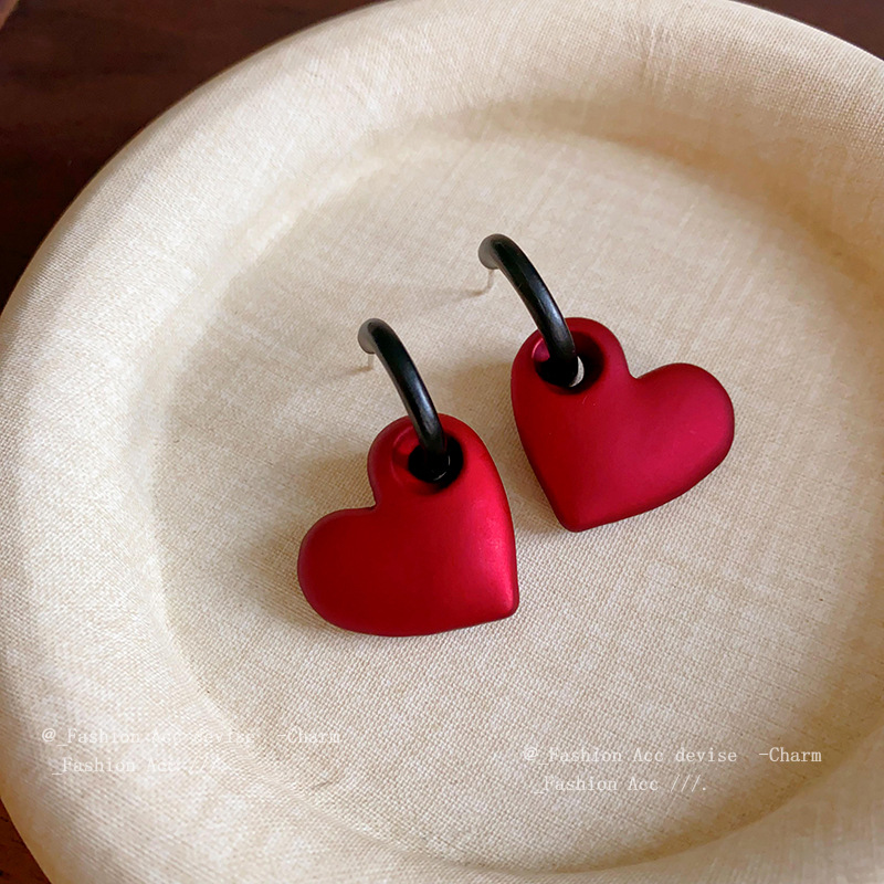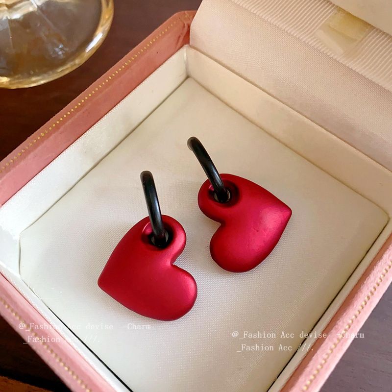 银针安可拉红喷漆爱心耳环简约复古气质耳坠个性时尚高级感耳饰女