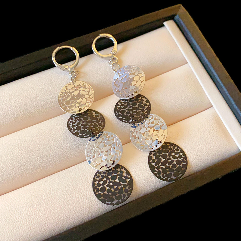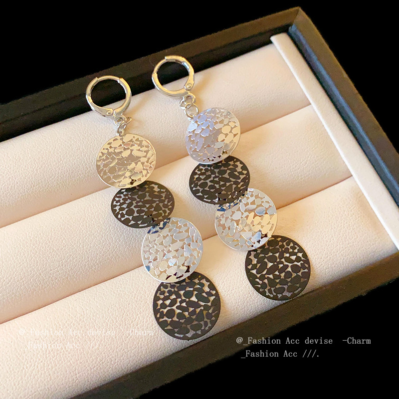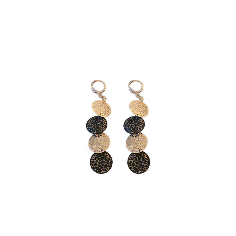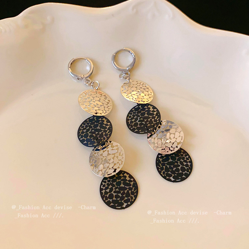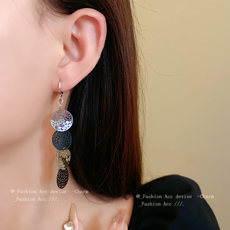简约圆形亮片拼接长款耳扣个性时尚设计感耳环复古高级感百搭耳饰