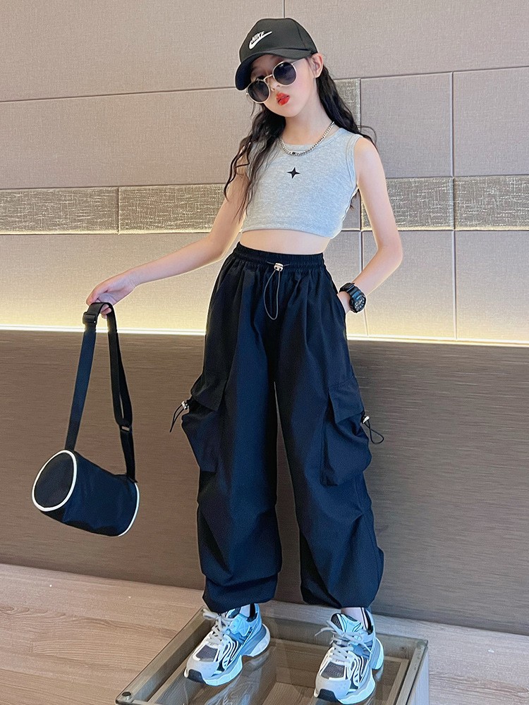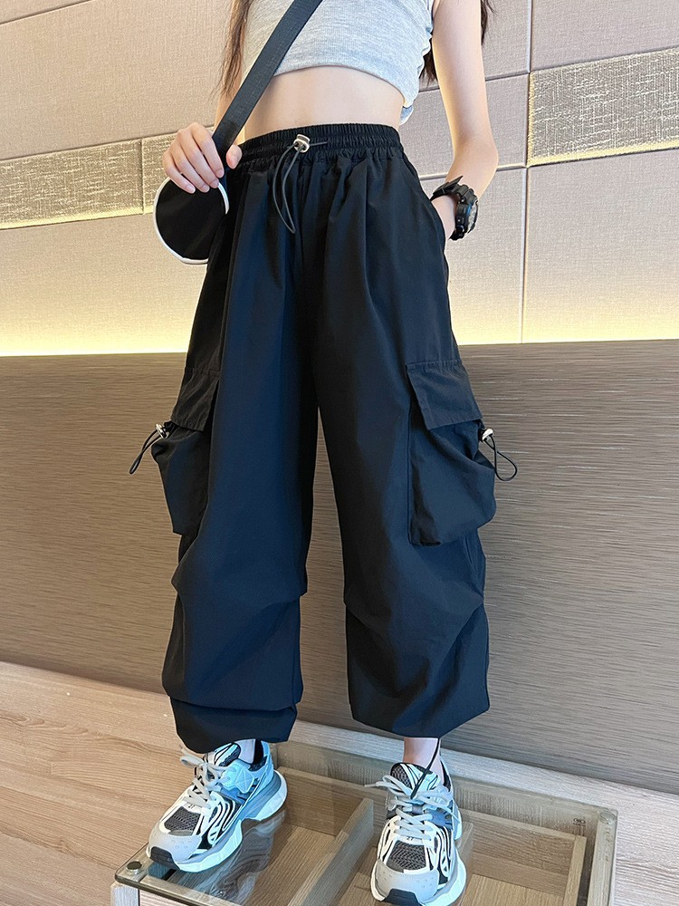 女童韩版工装裤薄款新款洋气女孩潮酷束脚裤儿童街舞休闲裤子