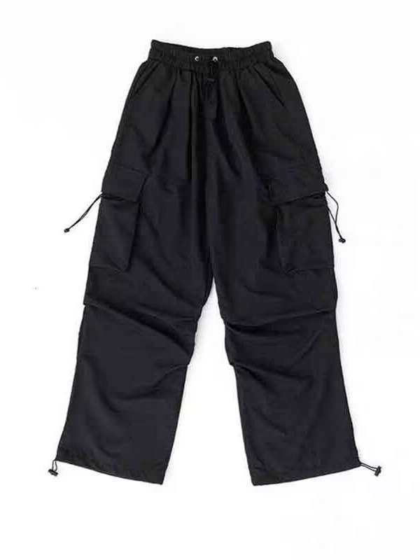 牛仔裤男春夏新款美式男装高街设计感折痕宽松直筒抽绳男士长裤子