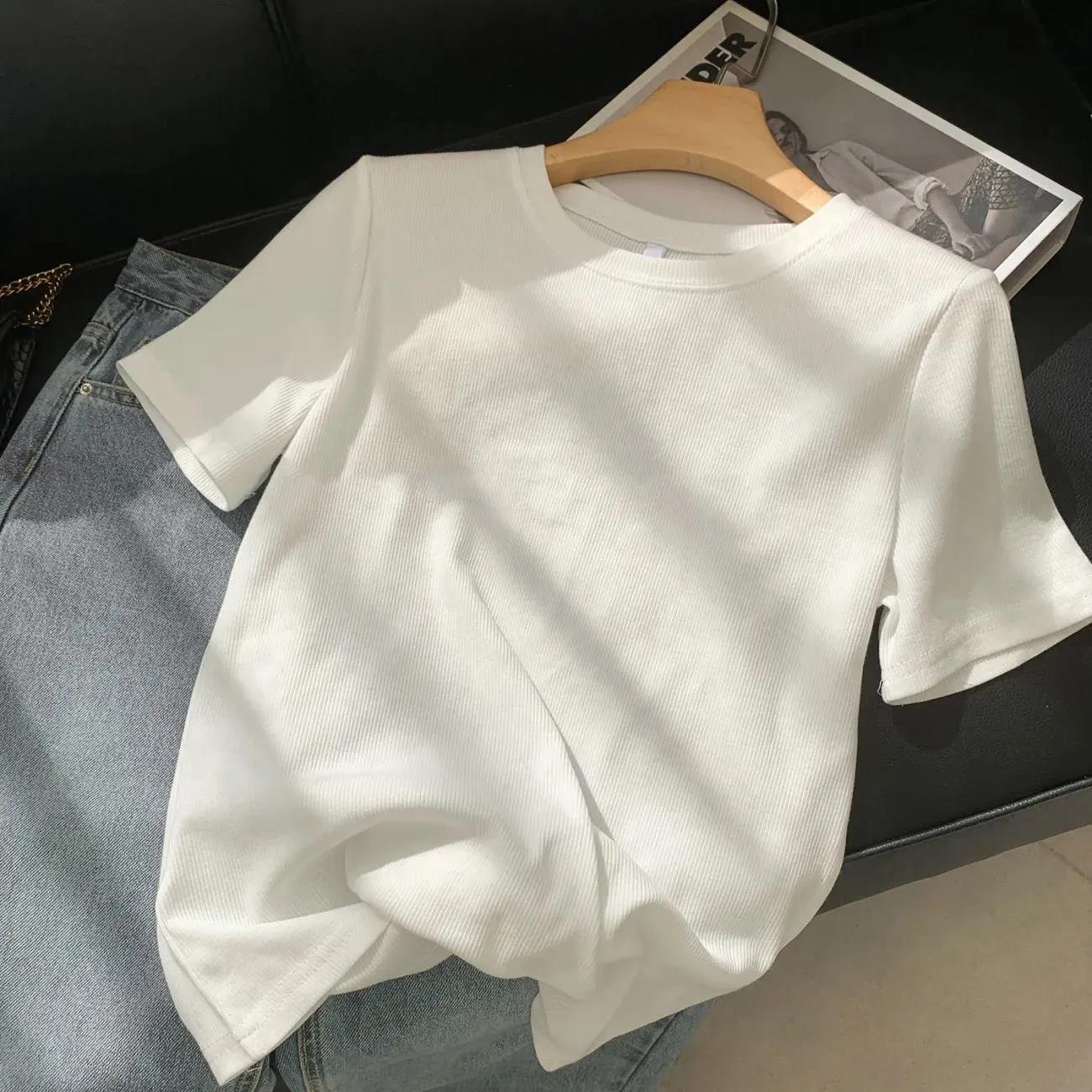 冰丝螺纹白色短袖t恤女夏季新款洋气减龄百搭爆款ins风上衣潮