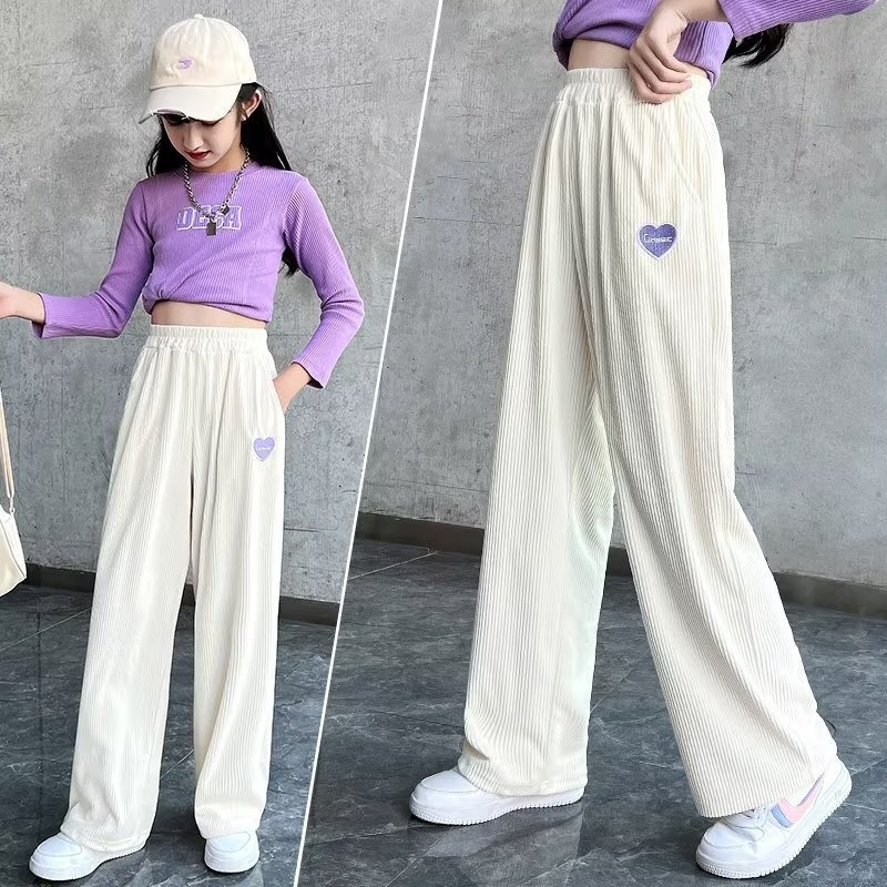 新款春秋女童阔腿裤儿童直筒裤子秋装女大童宽松秋季运动长裤