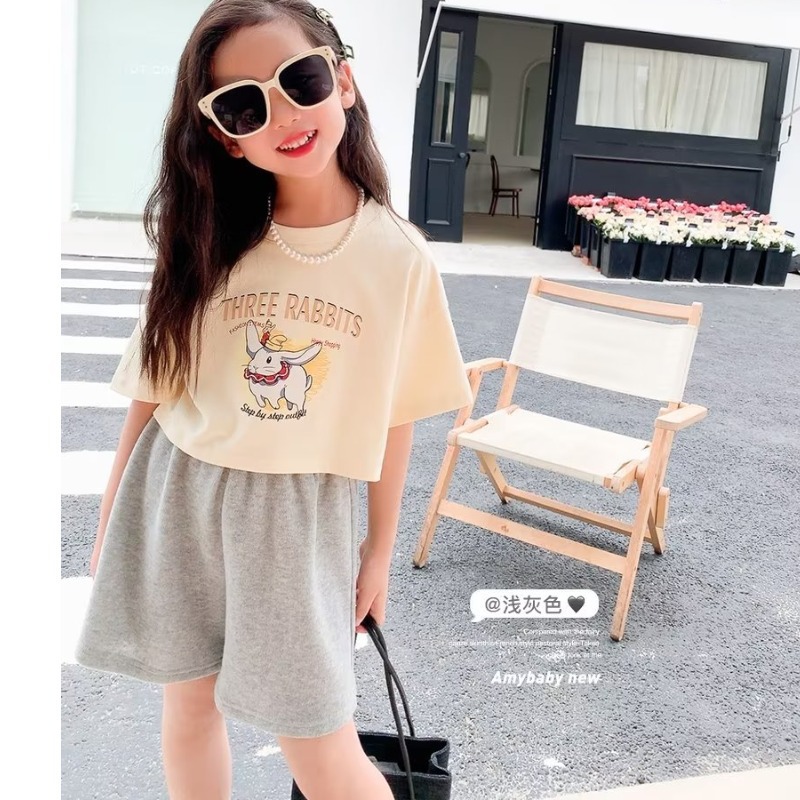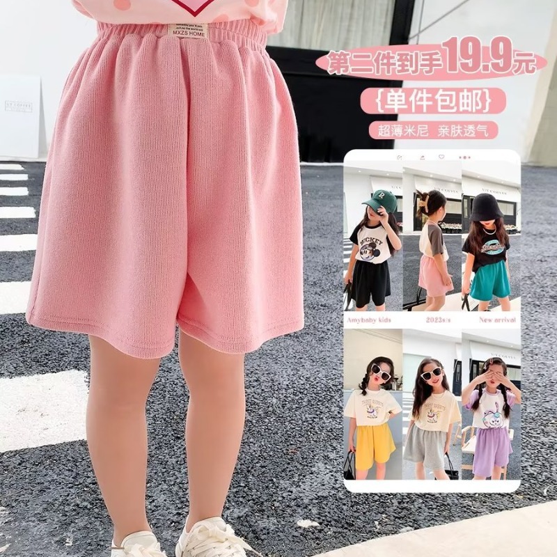 Ambaby儿童休闲短裤新款女童糖果色简约纯色外穿夏装休闲裤潮