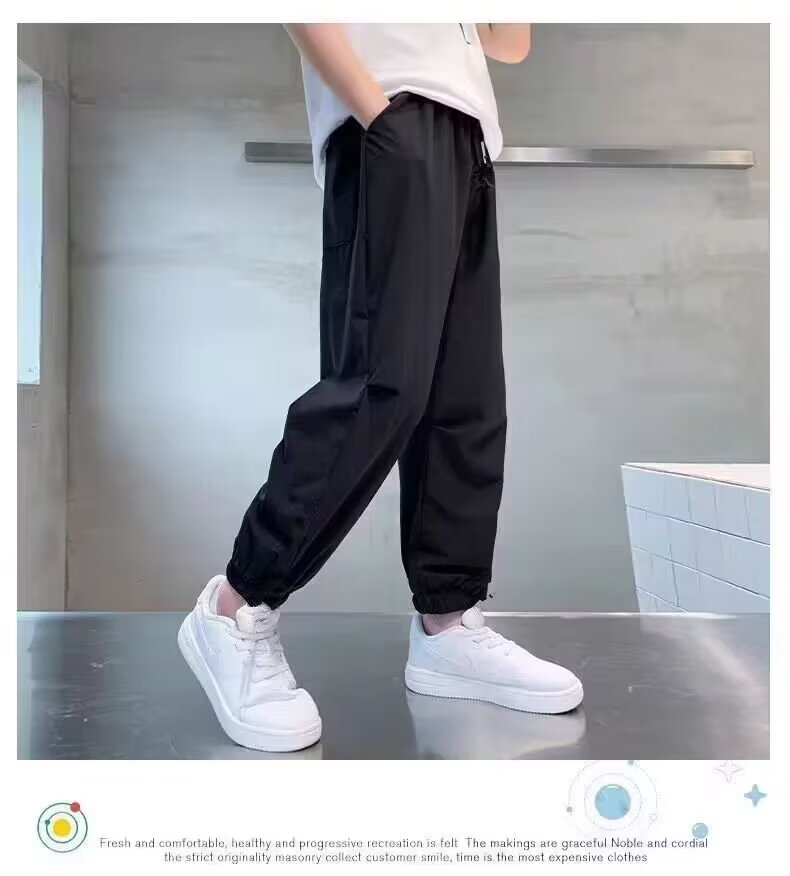 男童裤子夏季防蚊裤纯色冰丝裤男孩夏装宽松休闲裤中大童洋气潮流