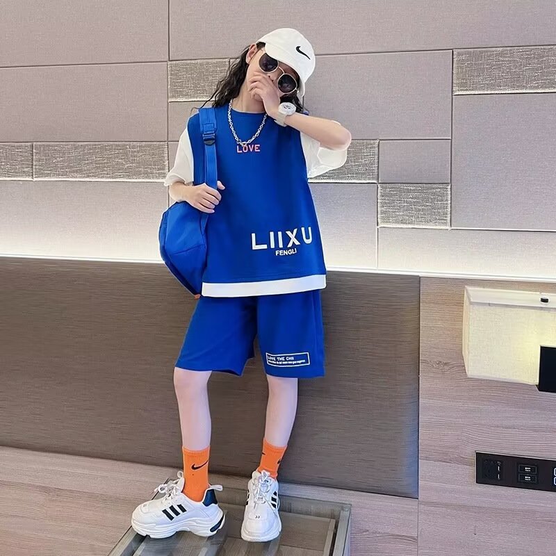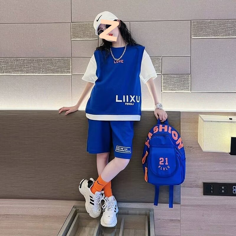 女童夏装套装新款中大儿童装夏季运动时髦男孩短袖痞帅气潮酷