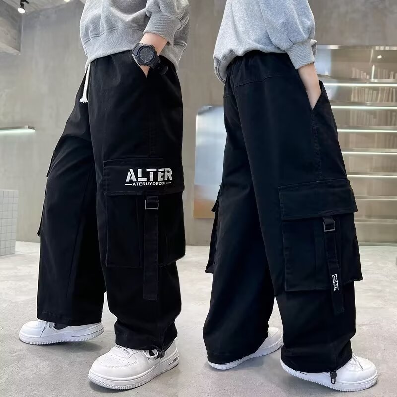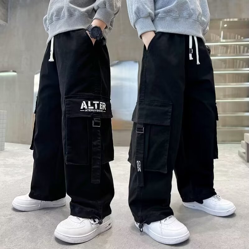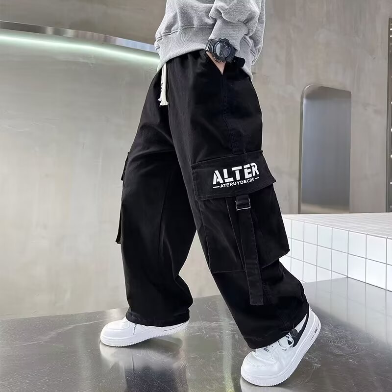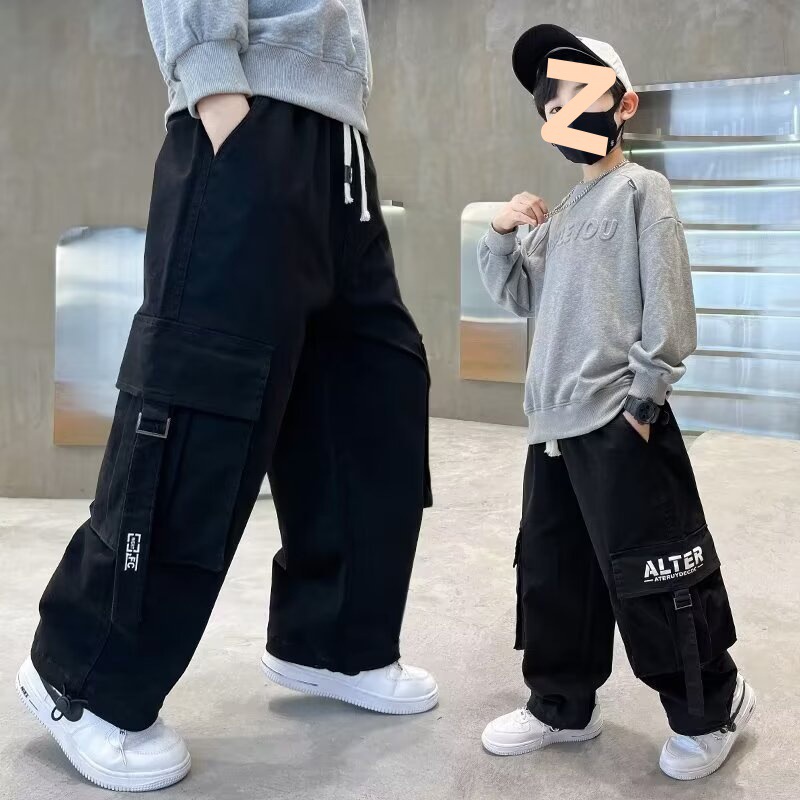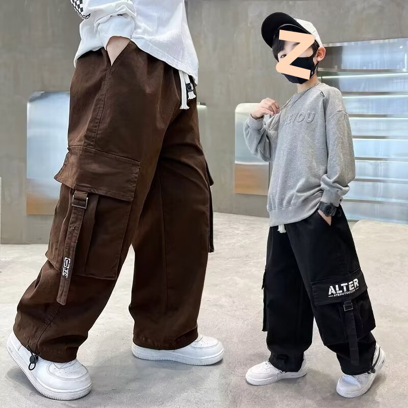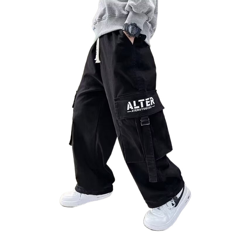 男童工装裤春秋款儿童加绒裤子春装潮痞帅中大童春季宽松长裤