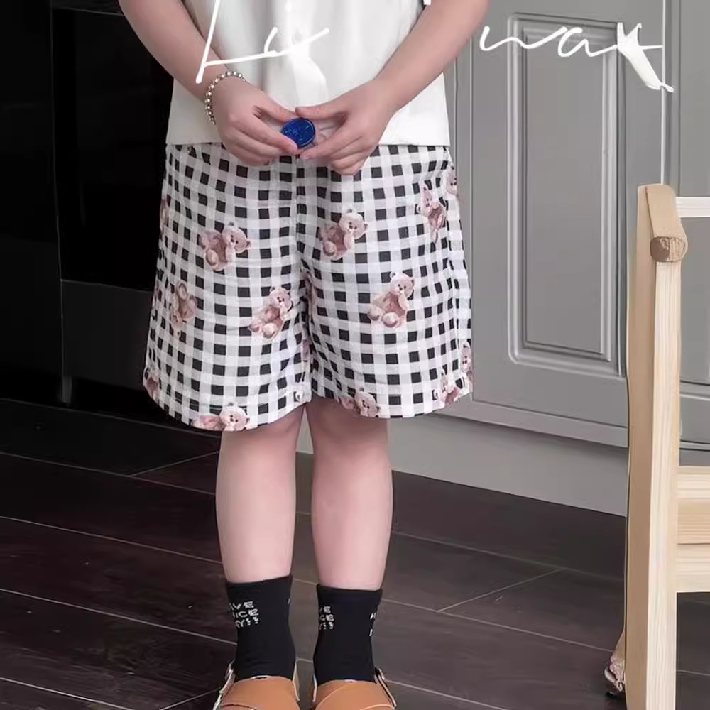 24夏新款儿童中裤双层棉纱裤送渔夫帽3-8岁宝宝太阳帽+中裤两件套