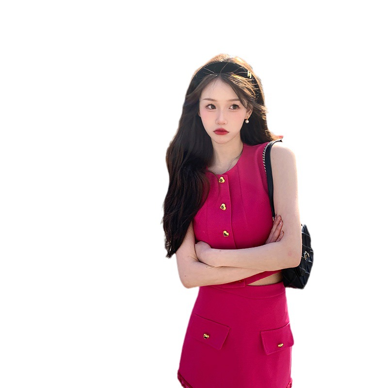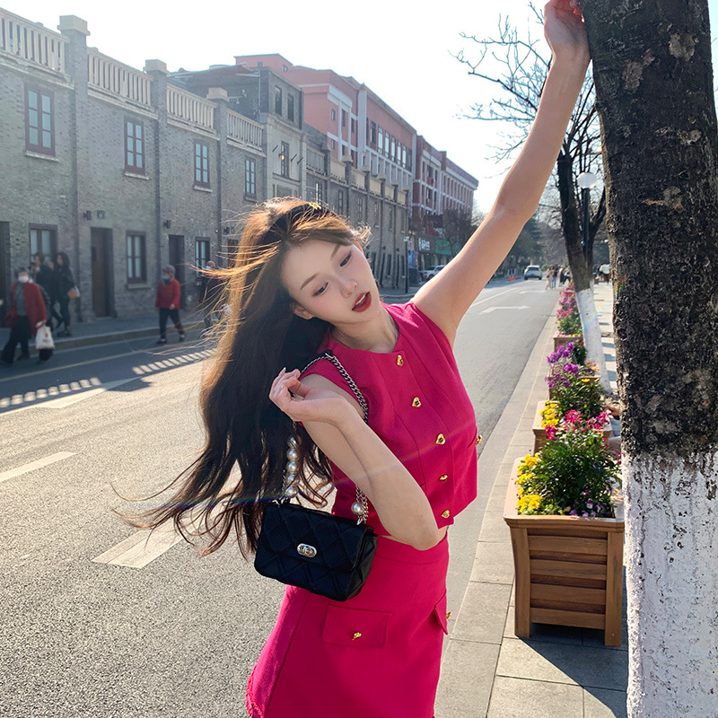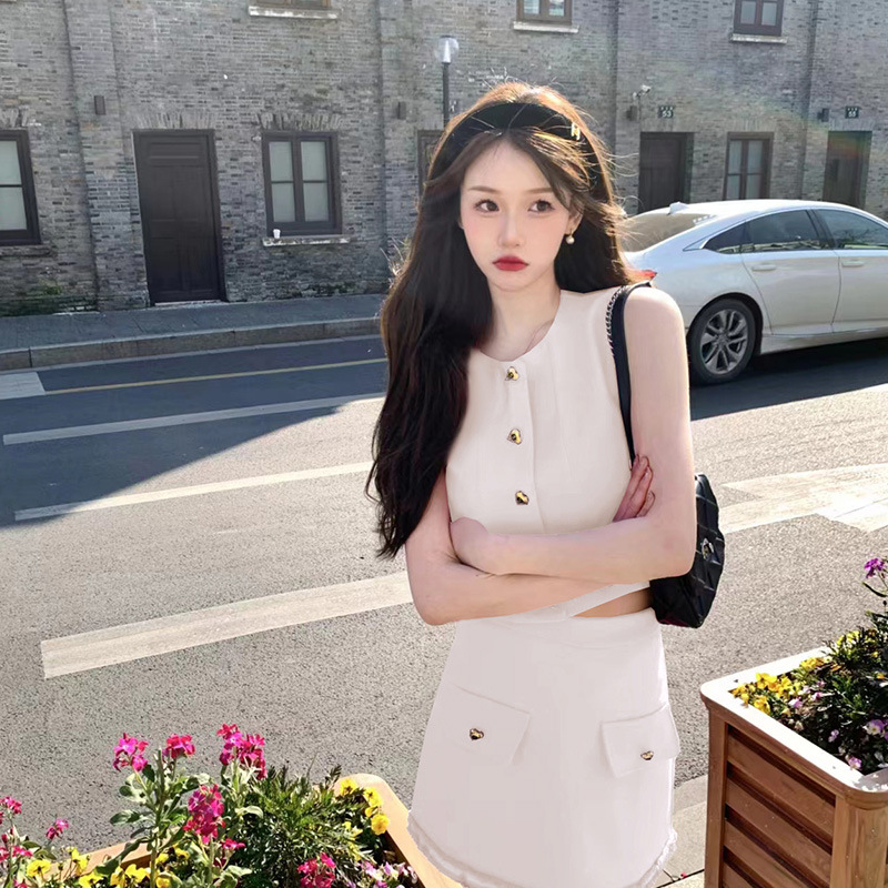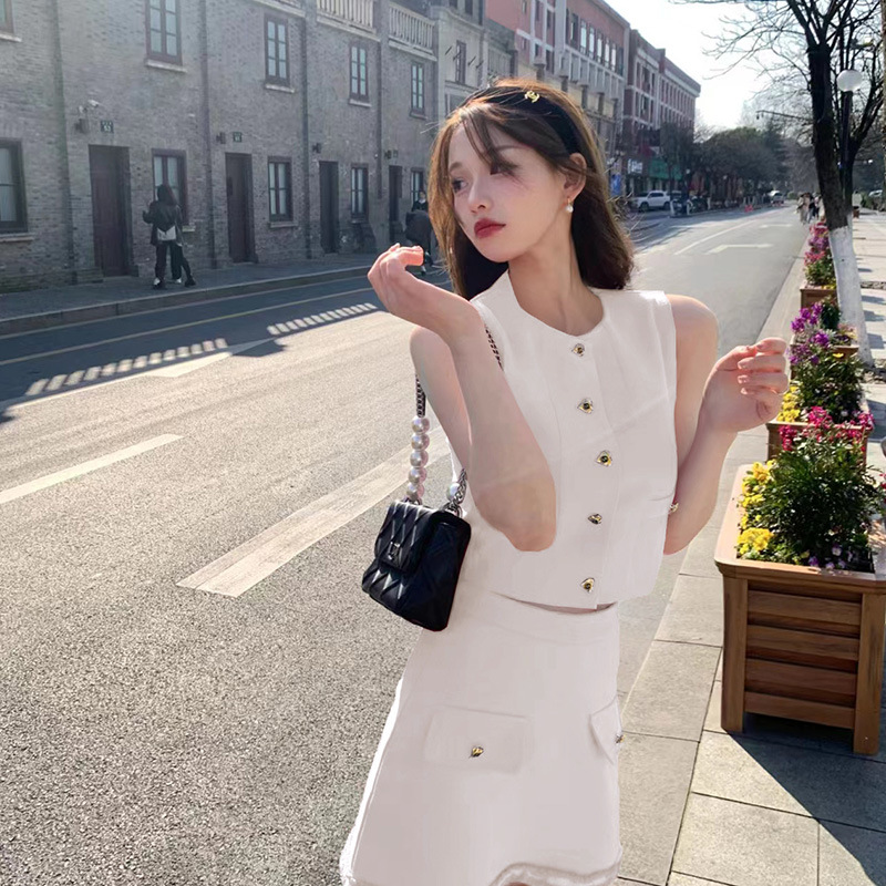 实拍夏季新款小个子洋气时髦套装气质时尚度假小香风套装裙两件套