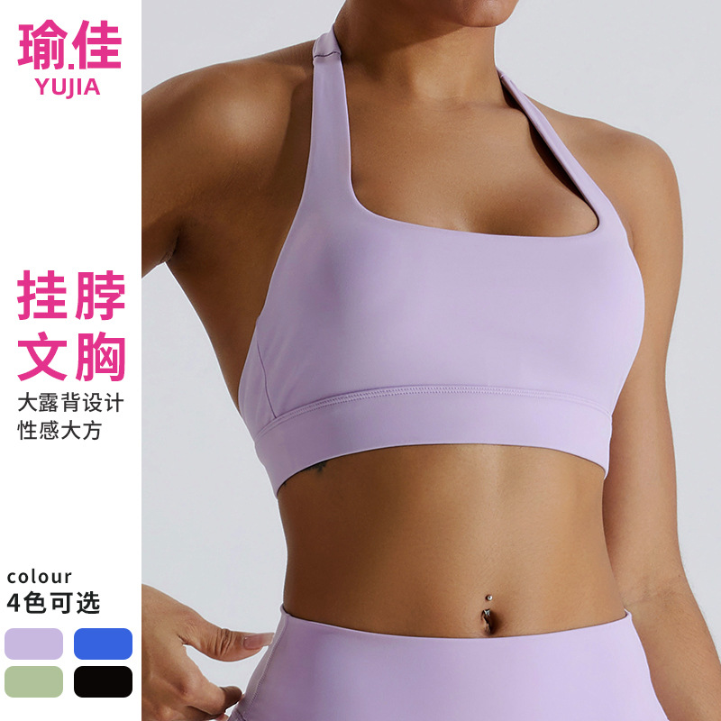 跨境欧美裸感瑜伽文胸速干挂脖美背健身背心跑步防震聚拢运动内衣