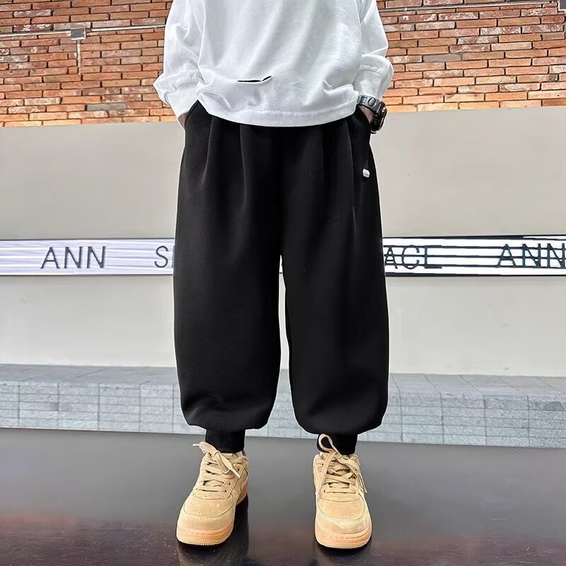 男童春夏装黑色运动卫裤新款长裤儿童早春季帅气宽松薄裤子潮
