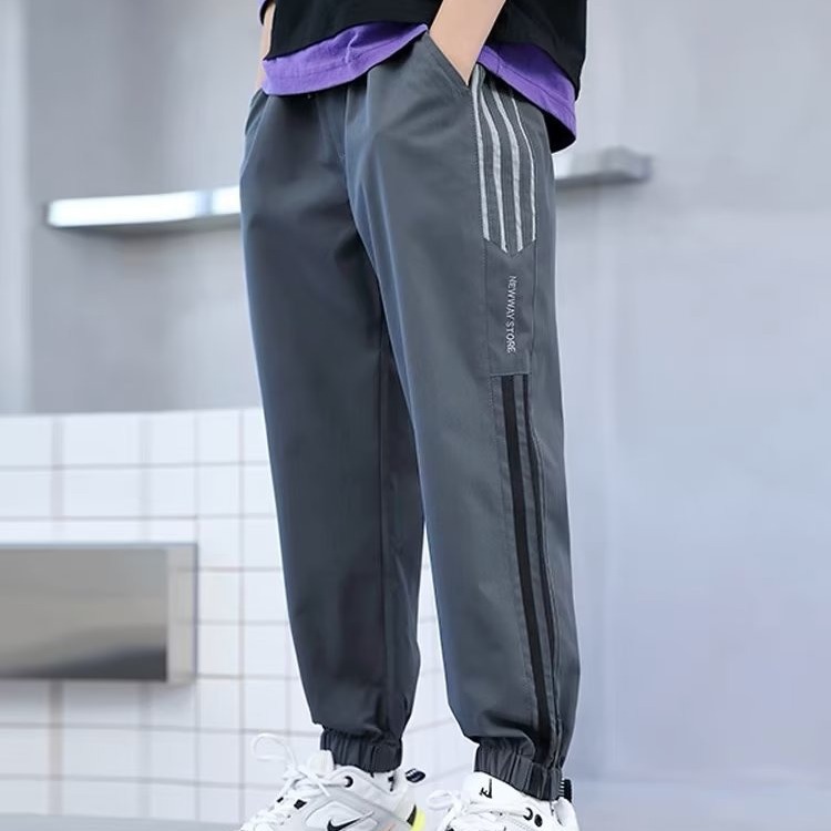 男童运动裤夏季新款儿童防蚊裤学生休闲条纹束脚裤夏季速干潮
