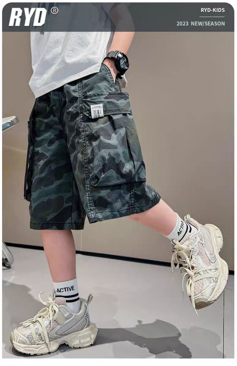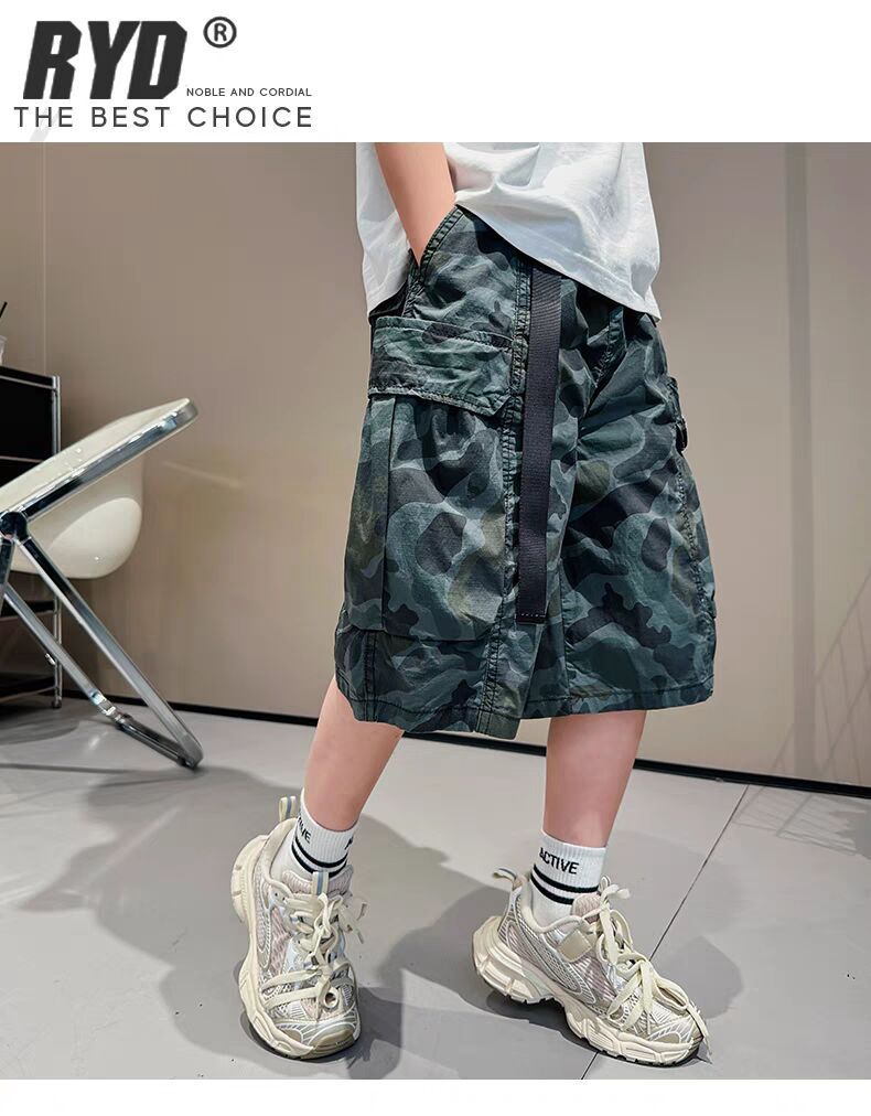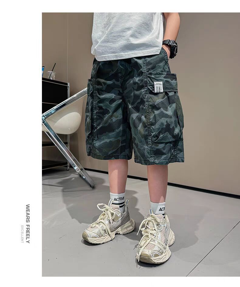 男童夏季短裤儿童工装裤新款中大童休闲五分裤炸街男孩中裤潮