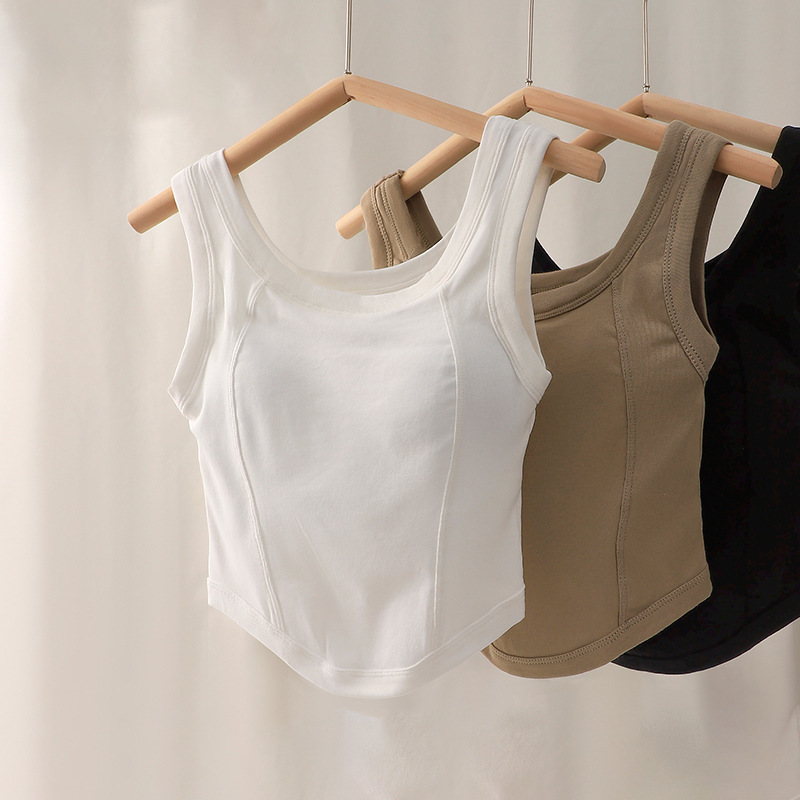 带胸垫纯棉小吊带背心女内搭外穿鱼骨无袖t恤短款纯欲性感上衣夏