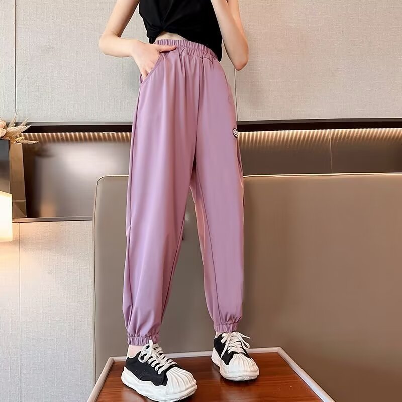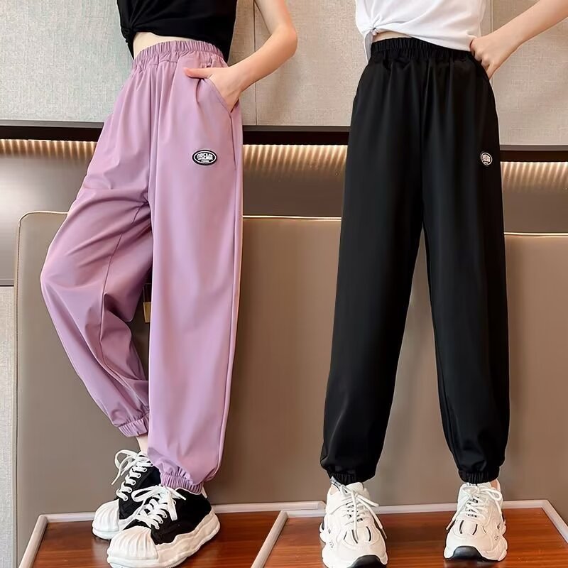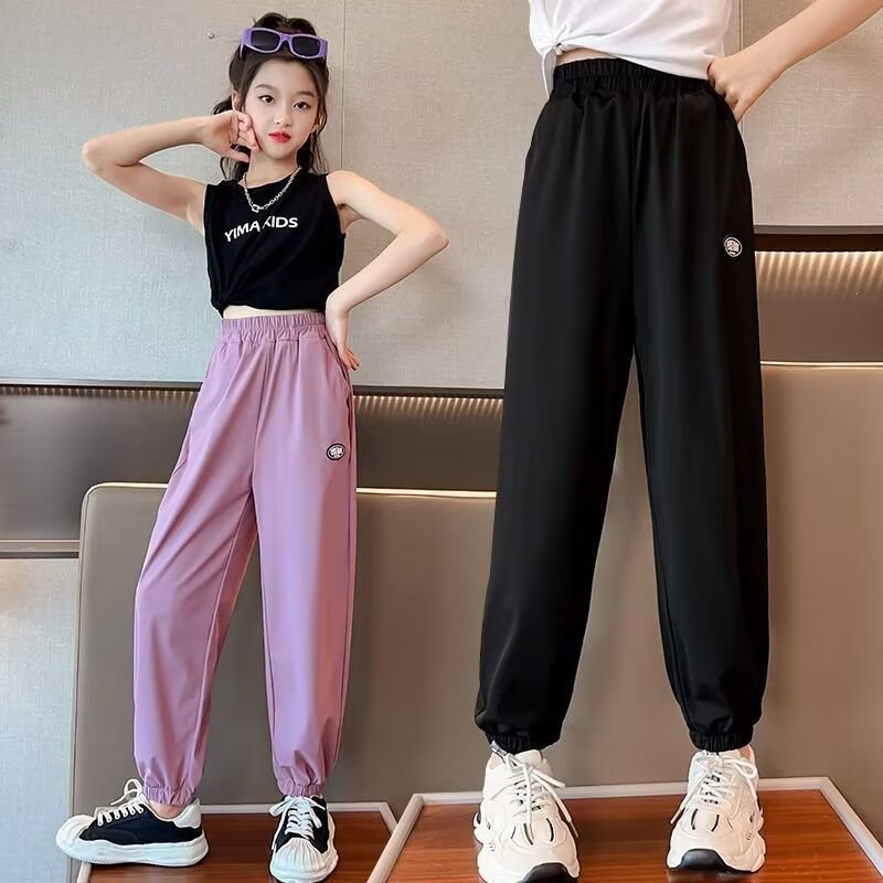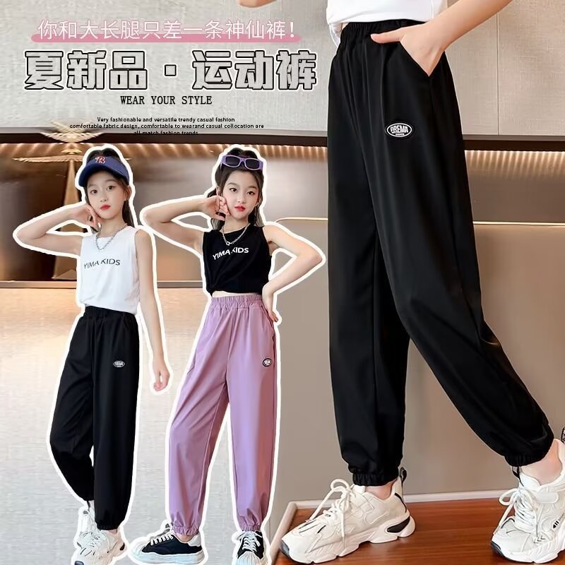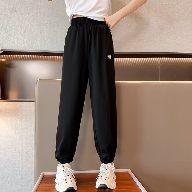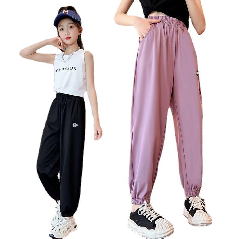 女童夏季裤子薄款夏天儿童速干运动裤夏款宽松大女童冰丝防蚊裤黑