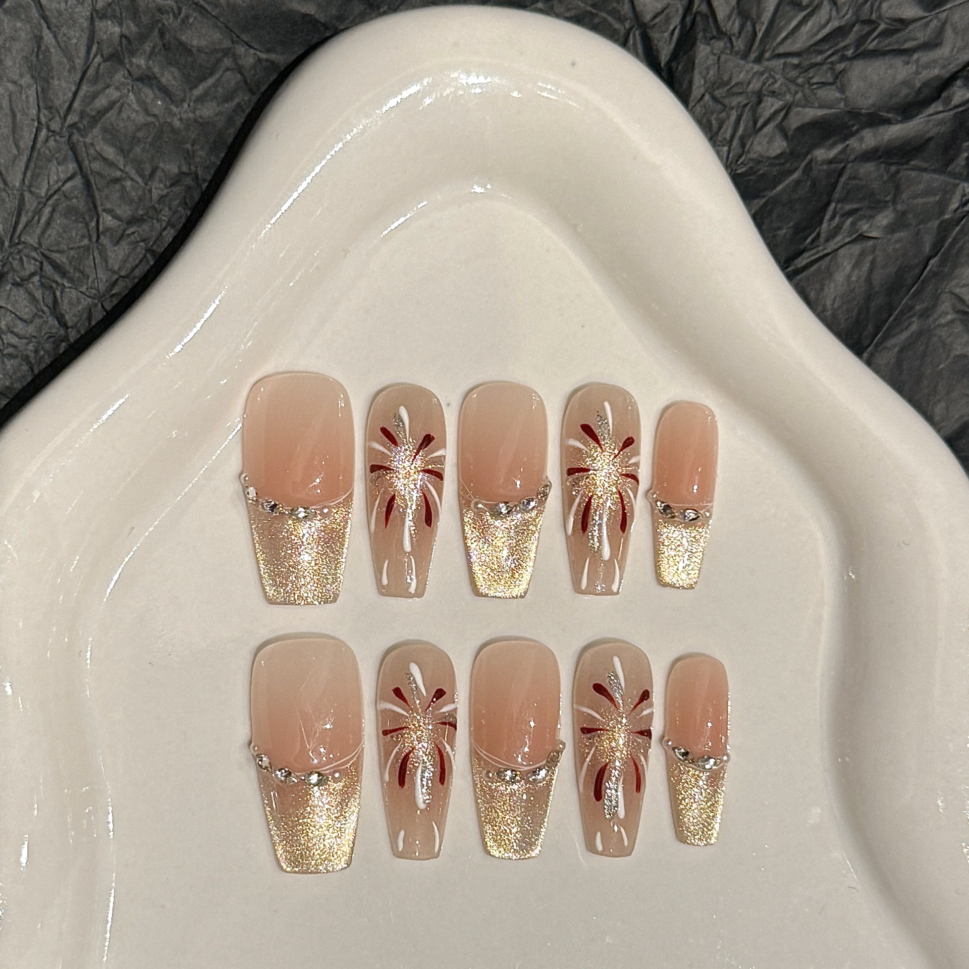 艺禾【夏夜烟火】高货精品手作猫眼穿戴甲工厂批发美甲贴片