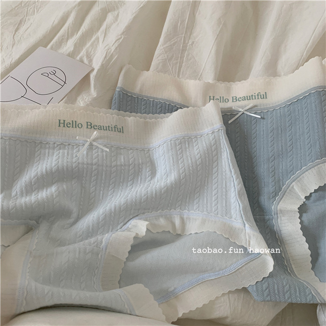 沦陷海边~秋日奶fufu的蓝色系内裤女生清爽棉质高弹包臀三角纯色