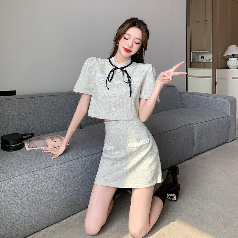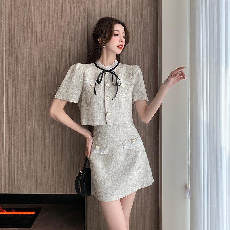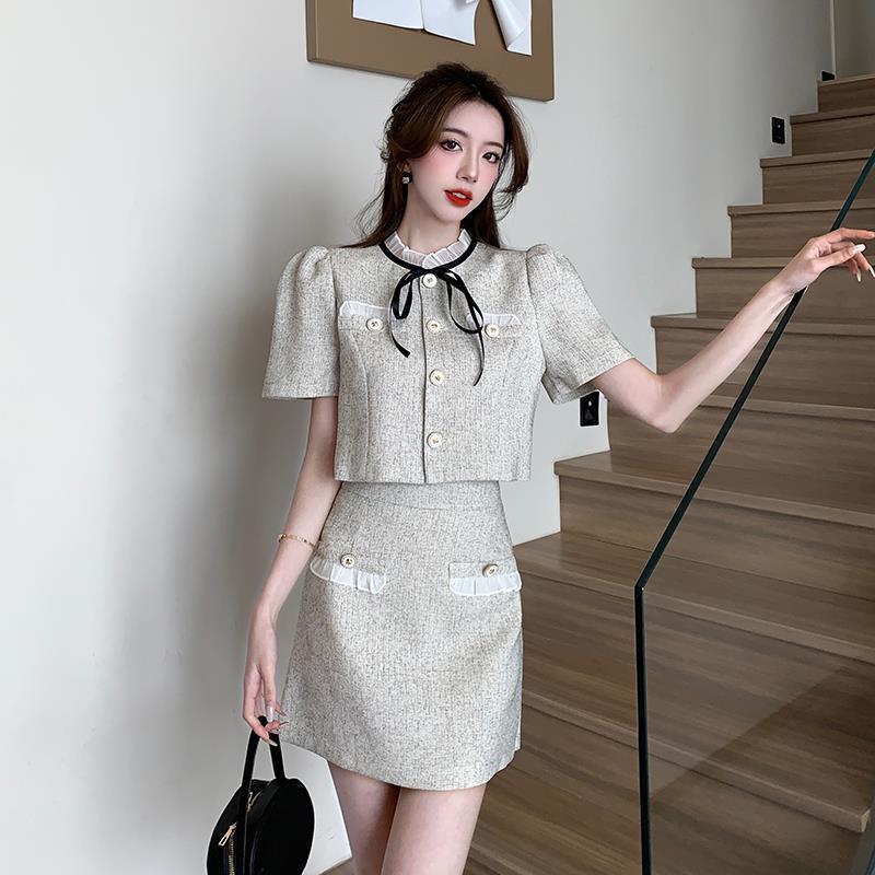 实拍小香风复古两件套感减龄小个子显高夏装搭配一整套